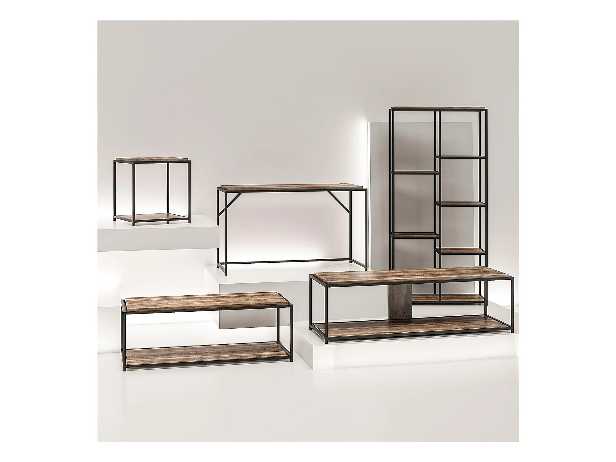 Bushwick | Secretária com escadas em aglomerado Nature e estrutura em metal preto