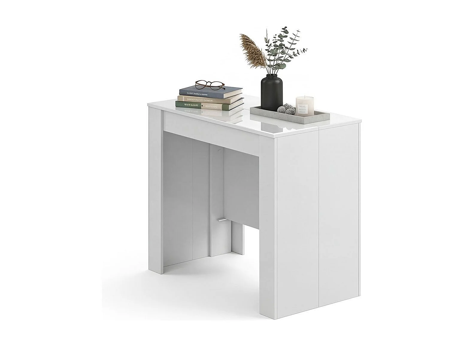 Mesa de consola extensível Denis em branco brilhante 50-235 cm Branco