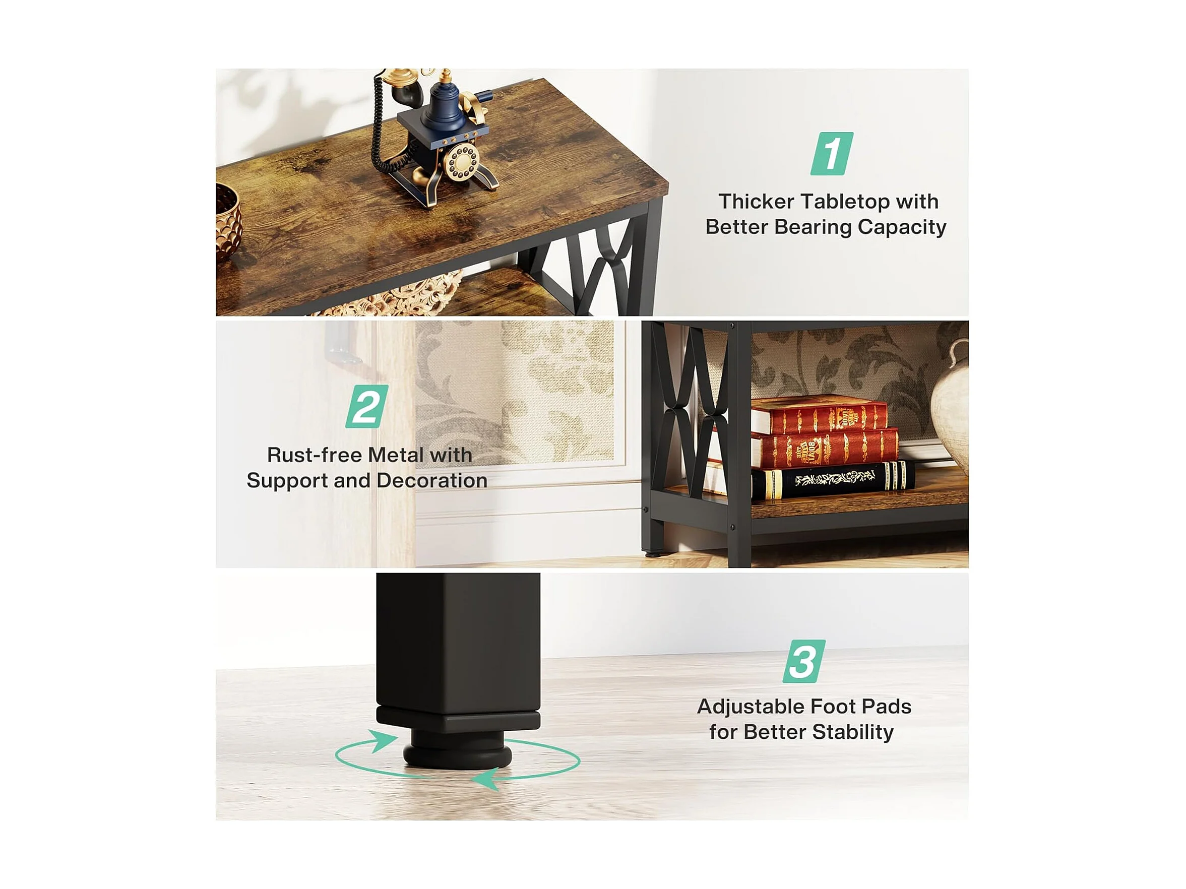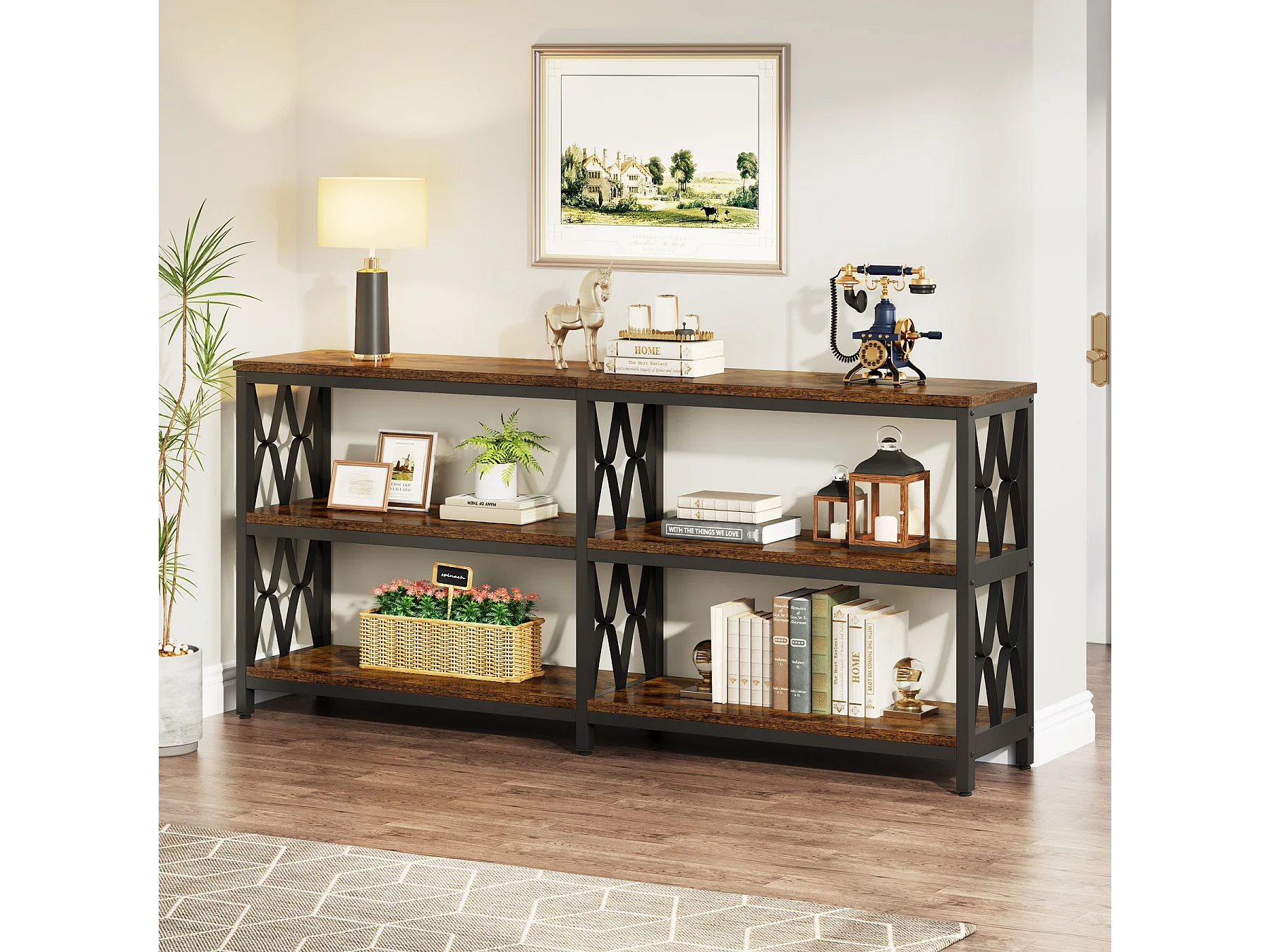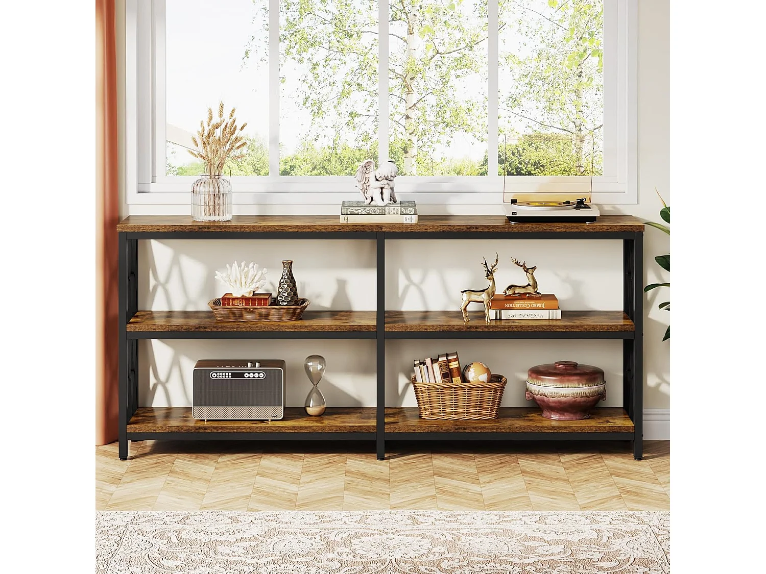 Mesa de Console com Prateleiras de Armazenamento, Mesa de Sofá Industrial de 180cm com 3 Andares para Sala de Estar