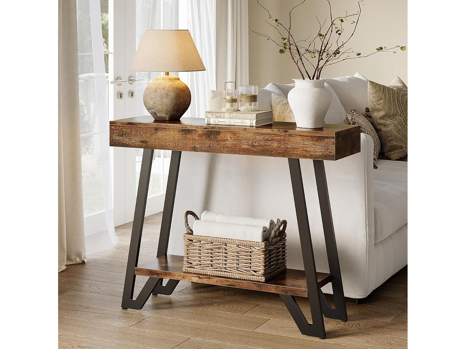 Mesa de Console de 103cm com Quadro Metálico Geométrico, Mesas de Entrada, Prateleiras de Armazenamento, 2 Camadas