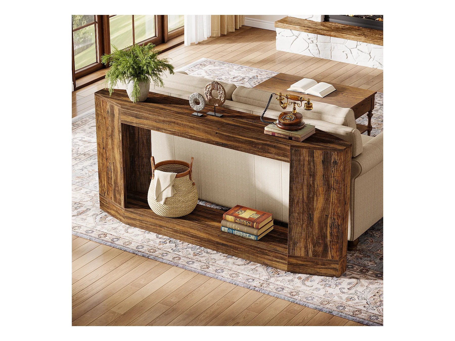 Mesa de console de 160 cm com espaço para guardar, mesa baixa atrás do sofá