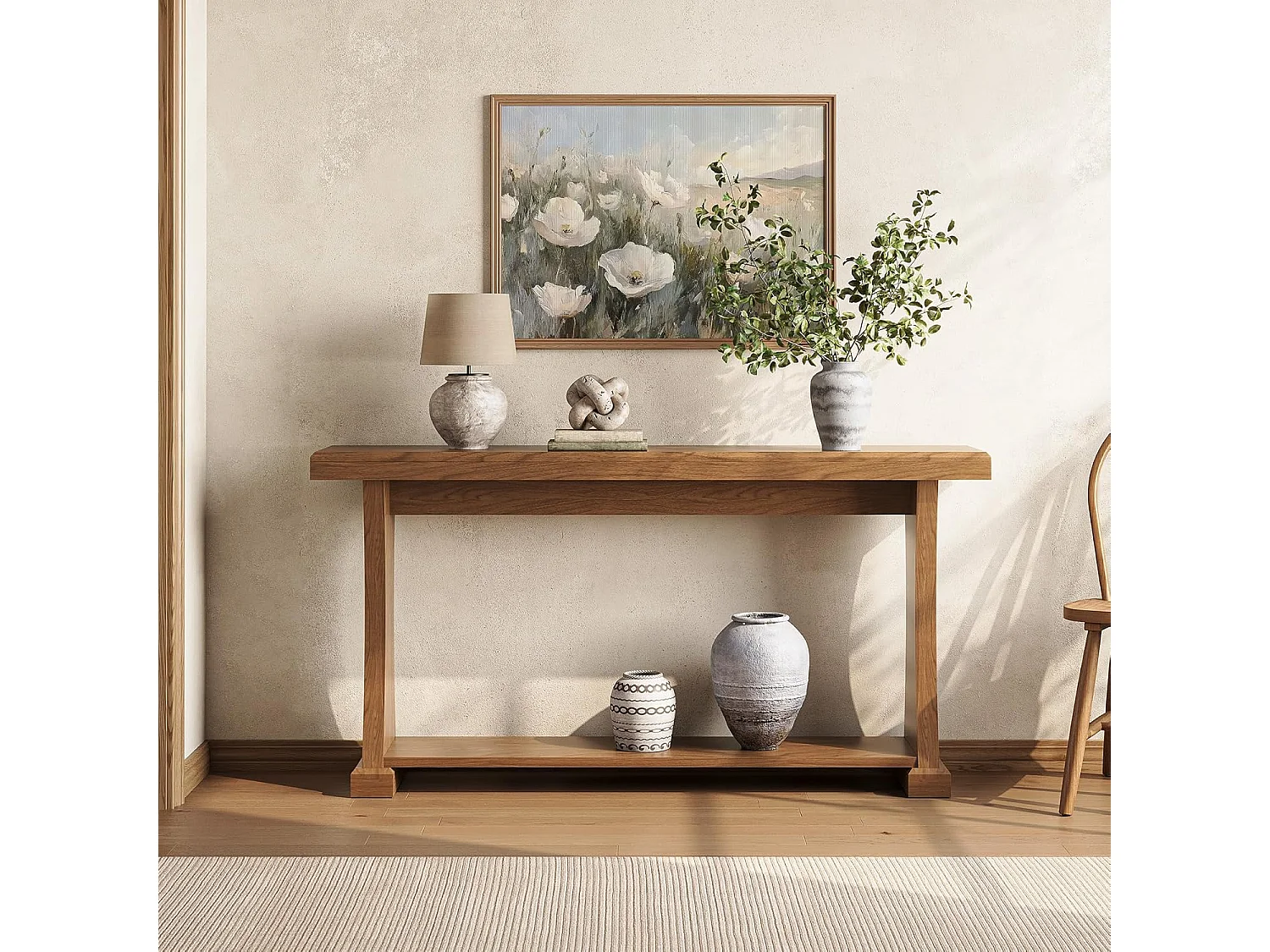 Mesa de Console de 160cm para Entrada, Mesa de Entrada de 2 Andares Atrás do Sofá