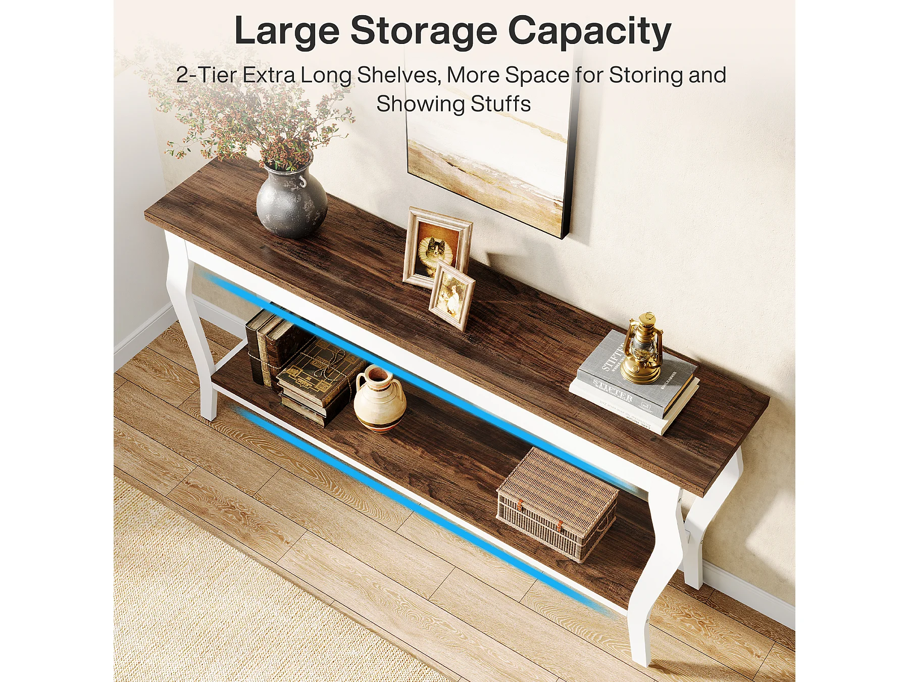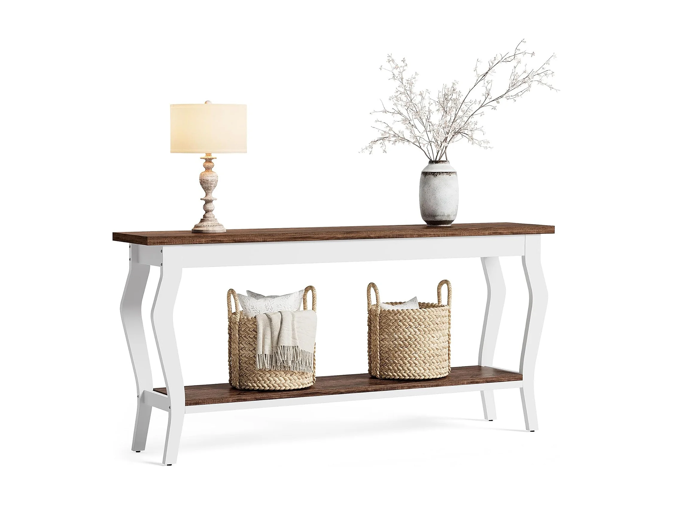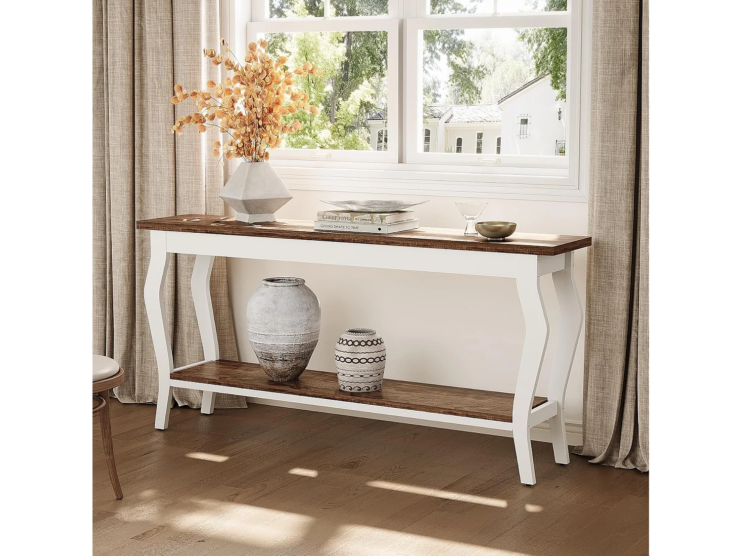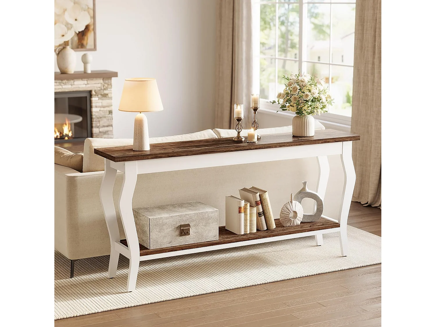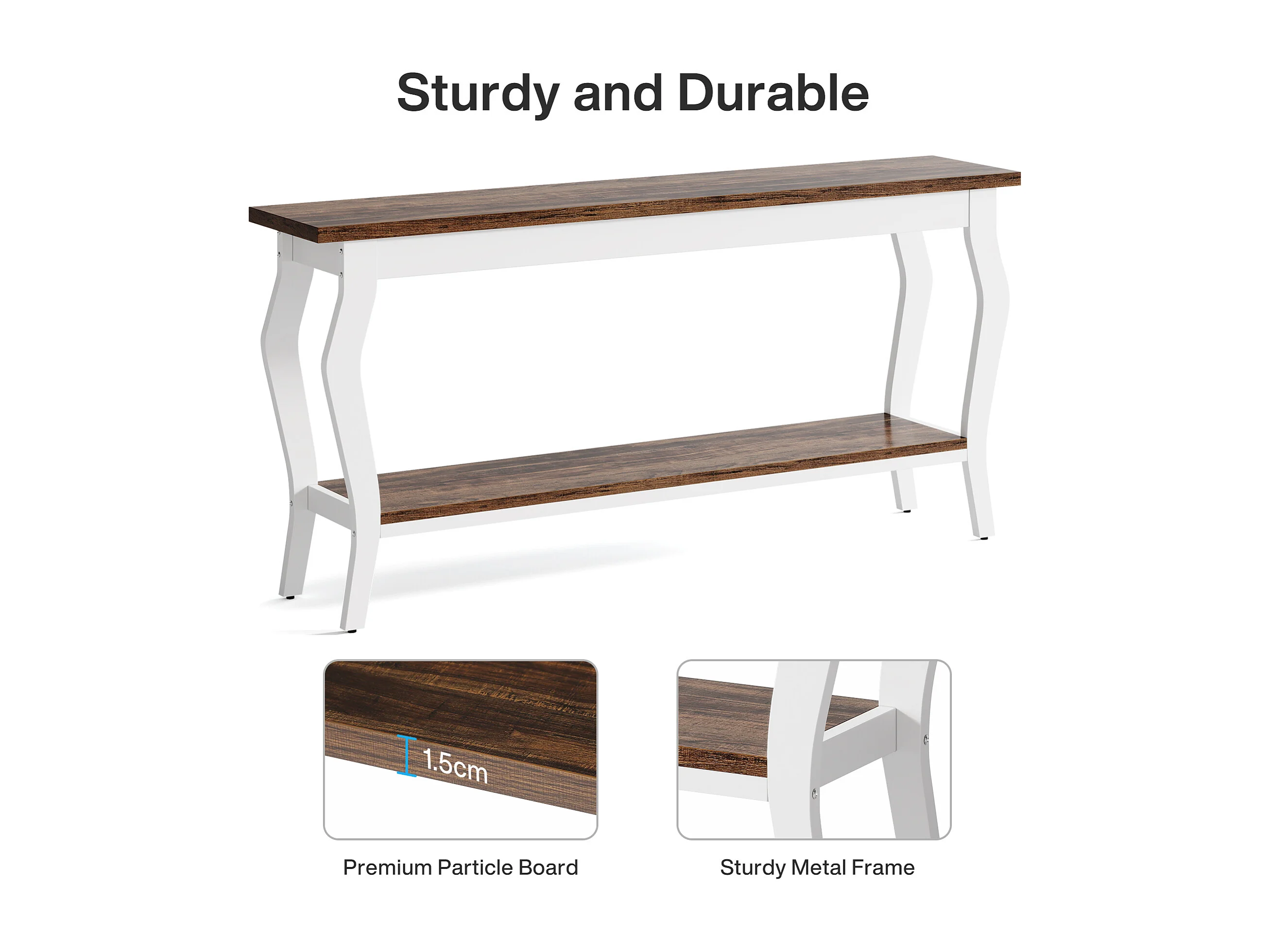 Mesa de Console de 180cm de Comprimento, Mesa de Sofá Vintage de 2 Camadas Behind The Couch
