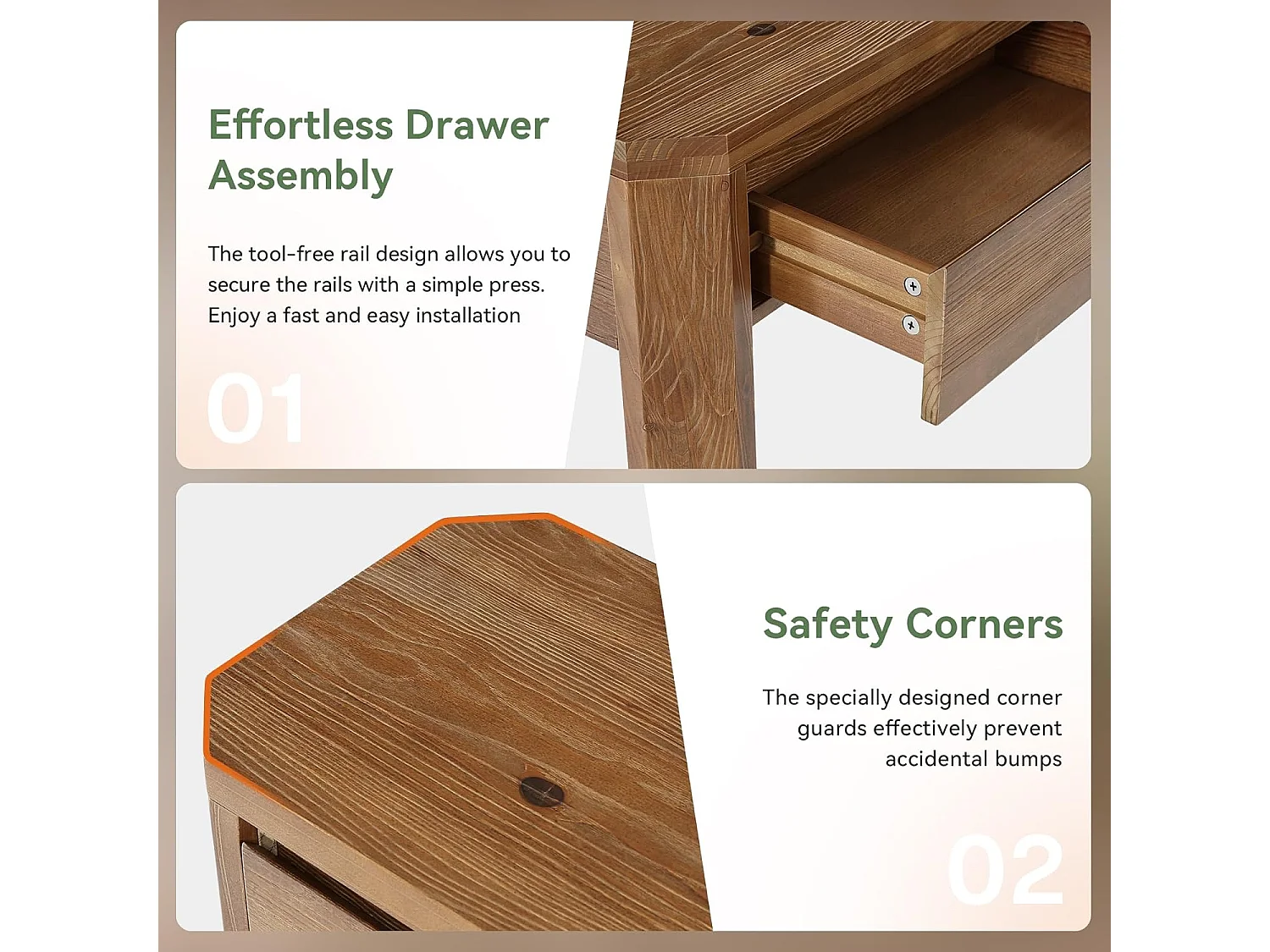 Mesa de Console de Madeira Sólida com 3 Gavetas, Mesa de Entrada de 160cm de Comprimento com Cantos Arredondados