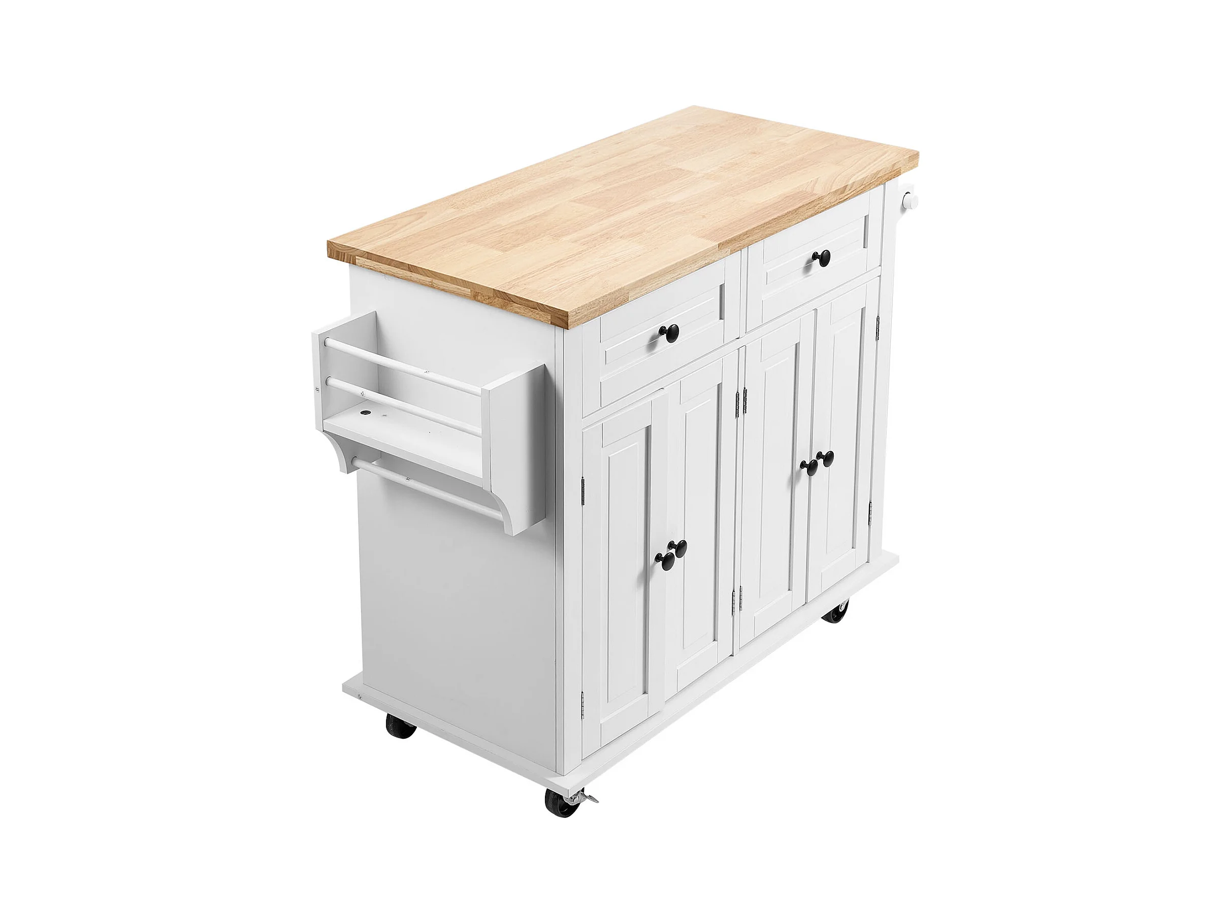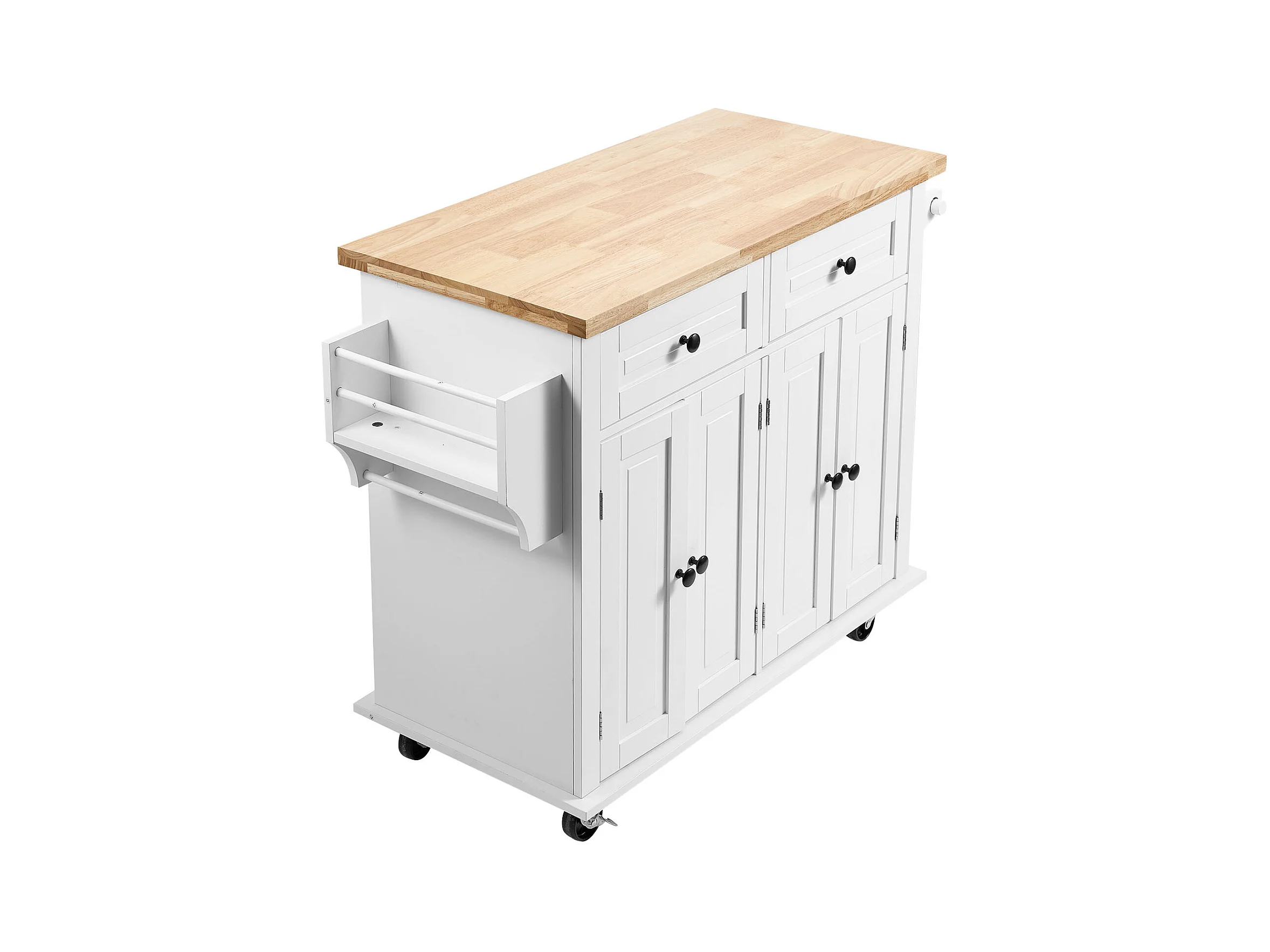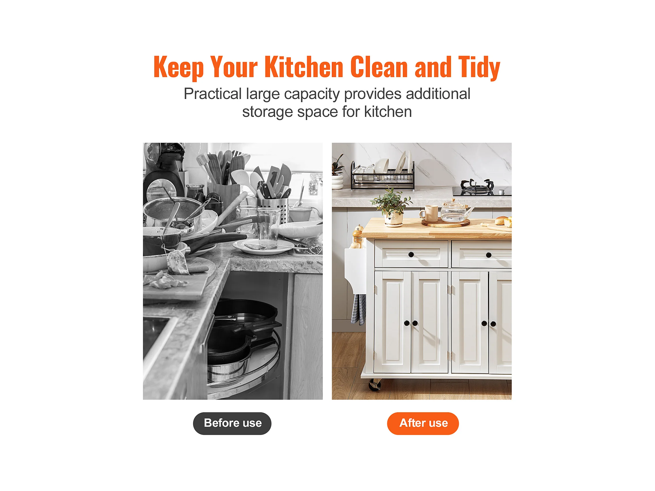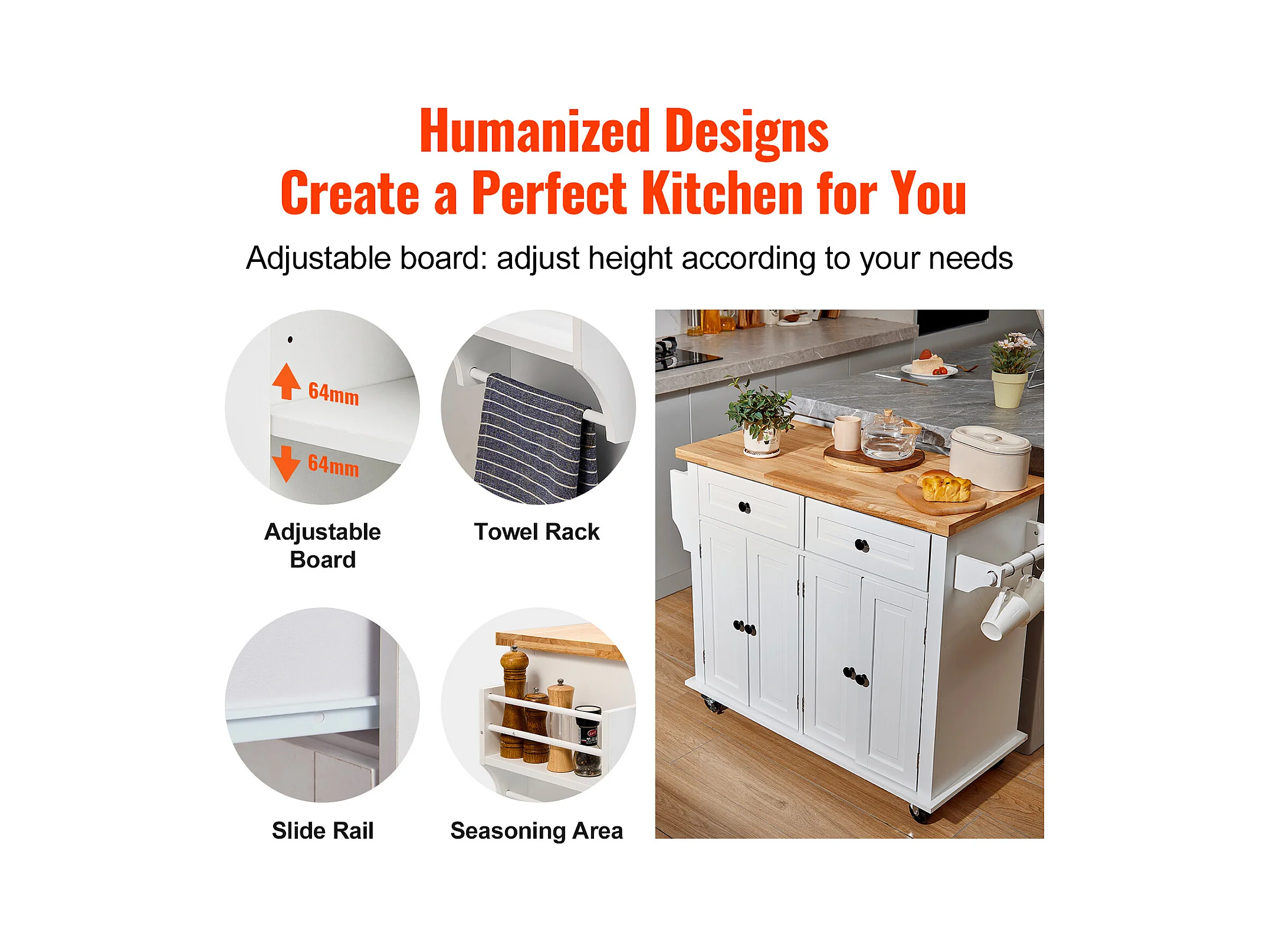 Mesa de Cozinha com Rodas SucceBuy, 90cm, Armário Rodante de Estocagem com Gaveta e Suporte, Branco