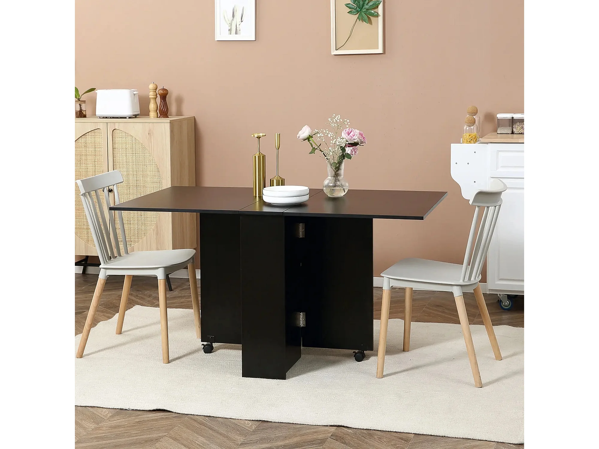 Mesa de Cozinha Dobrável Atman - Preto - Design Moderno e Funcional com 2 Prateleiras e Laterais Ajustáveis