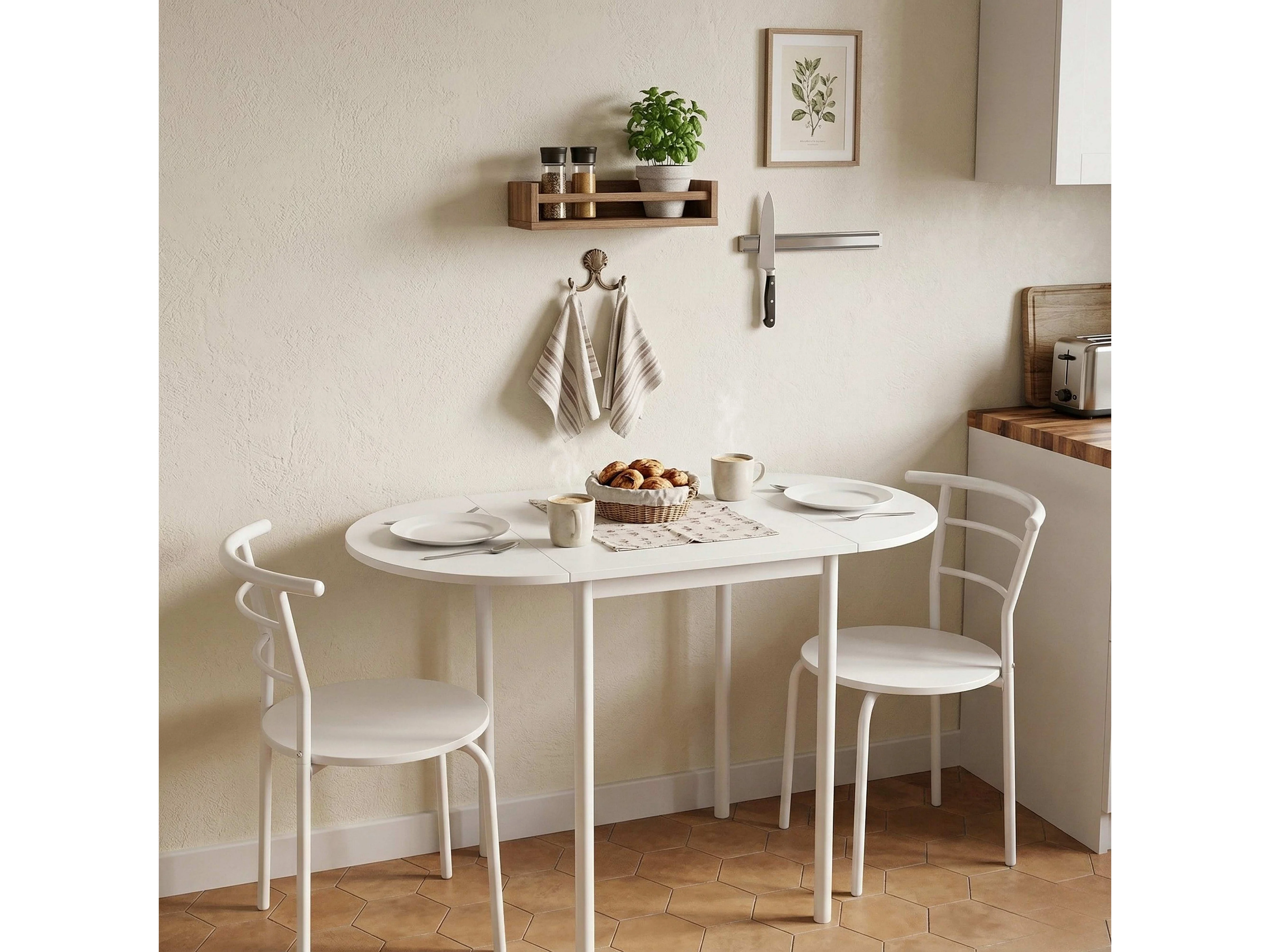 Mesa de cozinha extensível Butterfly e 2 cadeiras, brancas, 55-115 x 61 x 74 cm