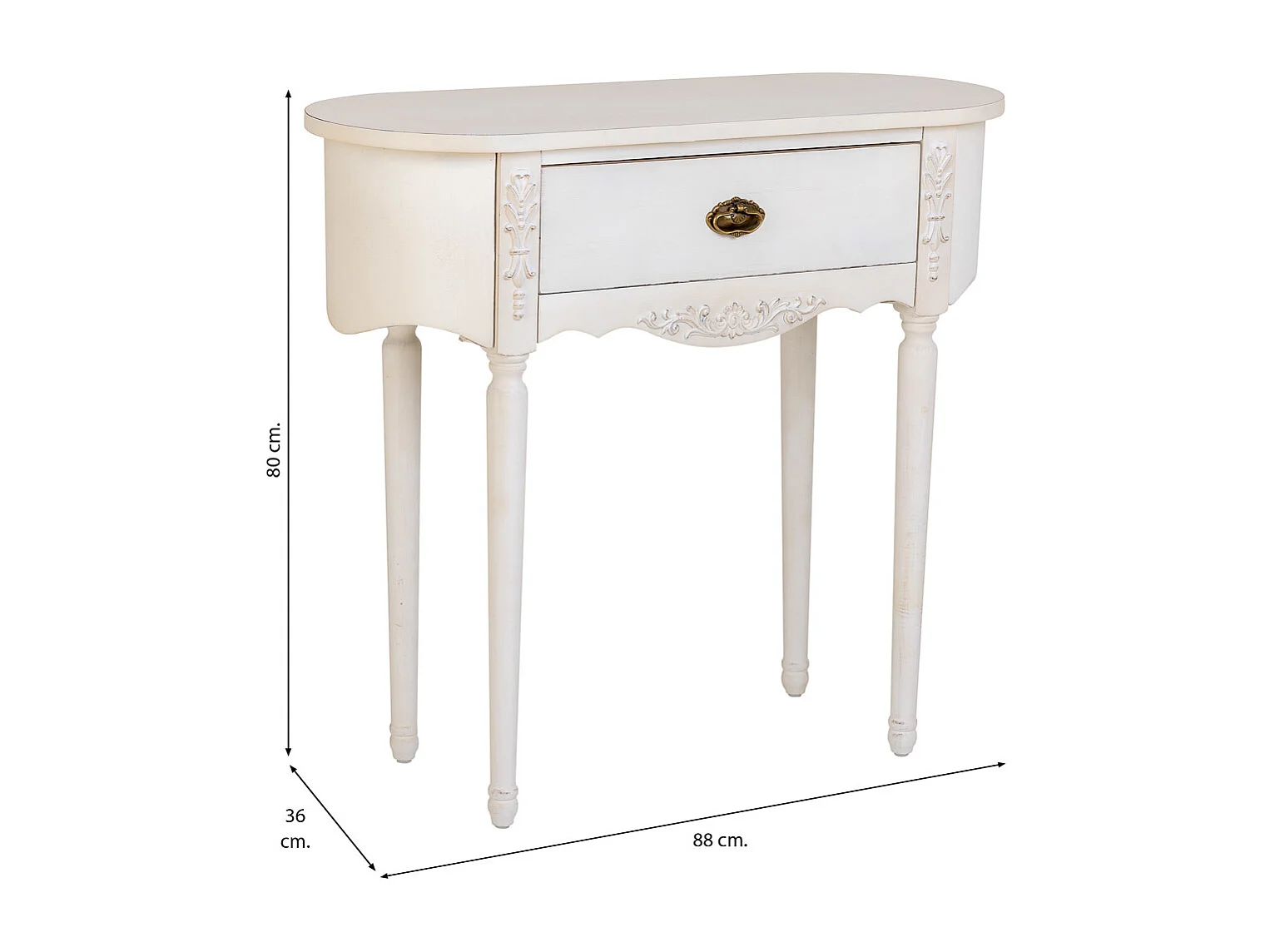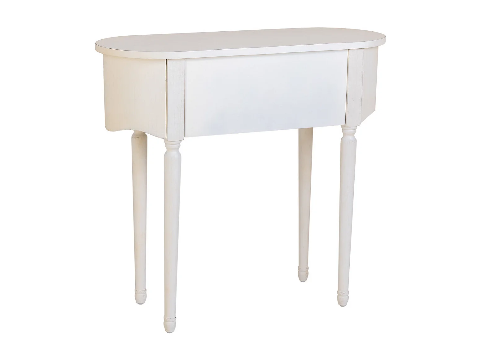 Mesa de entrada em madeira envelhecida laqueada branca com 1 gaveta.