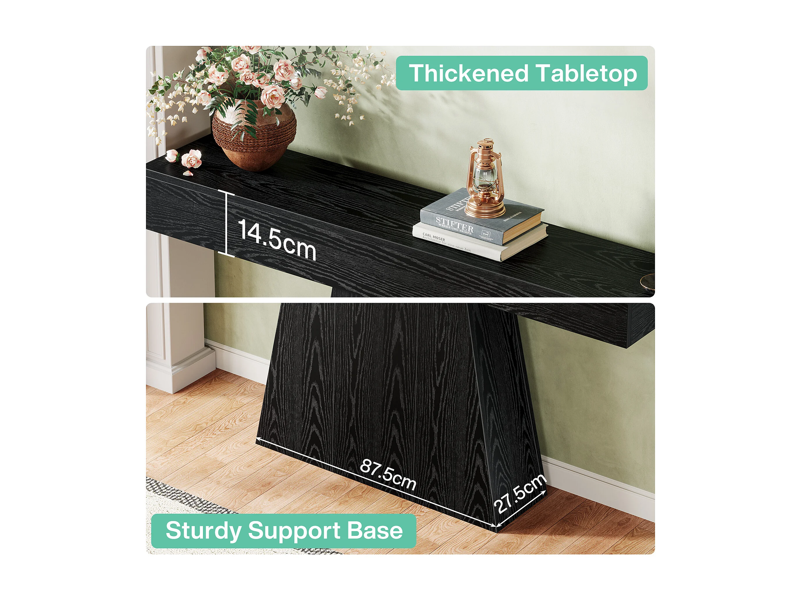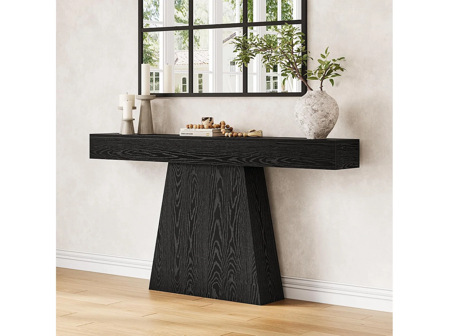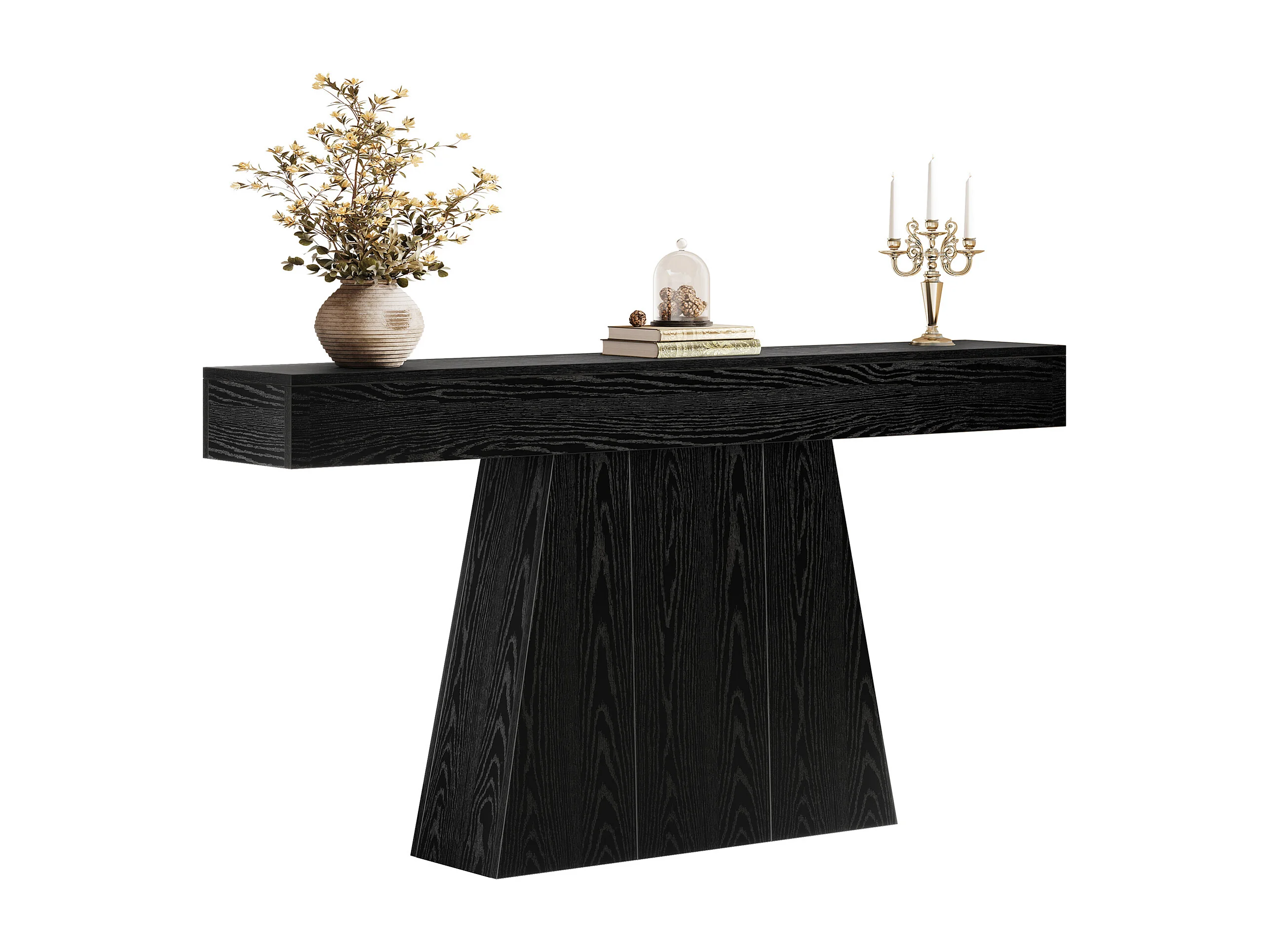 Mesa de Entrada, Mesa de Console Moderna Preta de 160cm com Base Trapezoidal para Sala de Estar