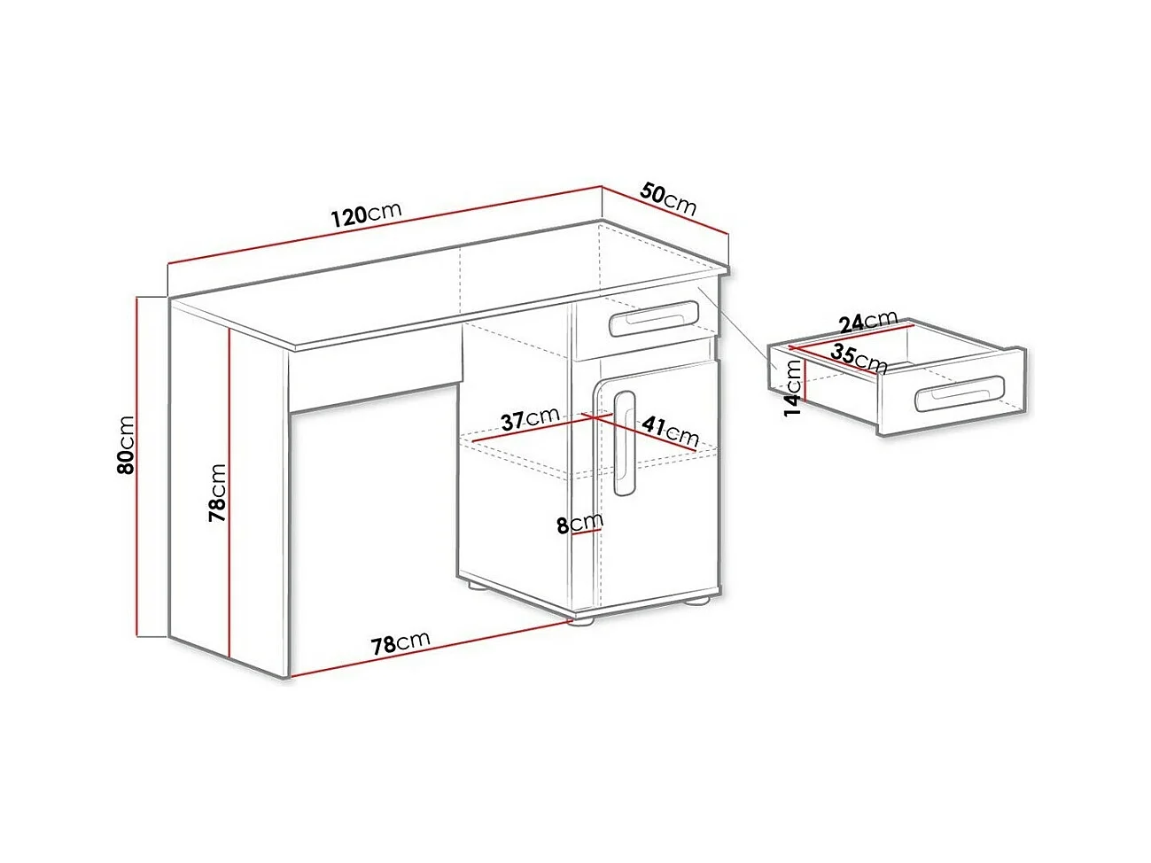 Mesa de escritório Salmere 109, Com mesa para teclado, 8x12x6cm