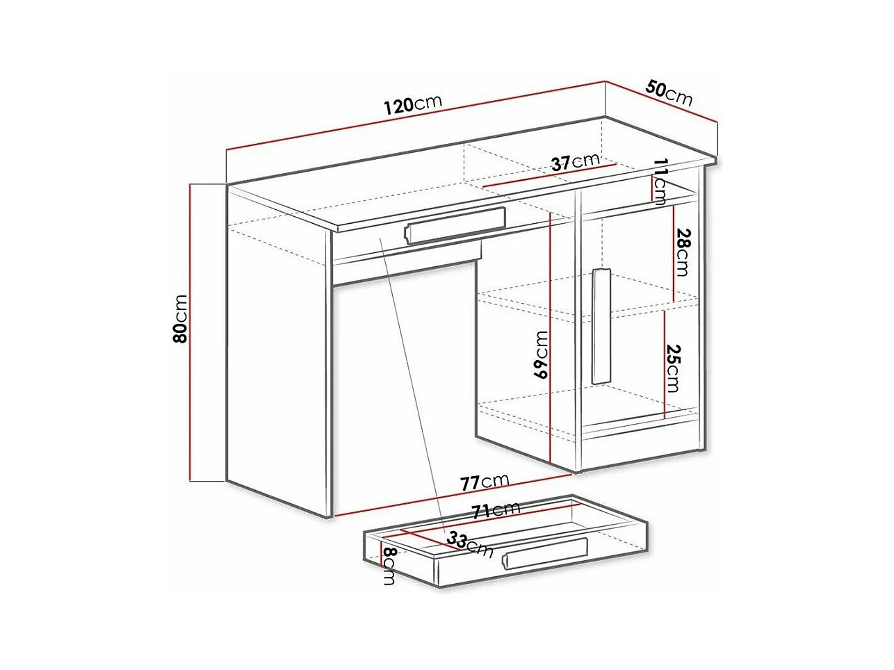 Mesa de escritório Merevari 100, Com gavetas, Número de portas: 1