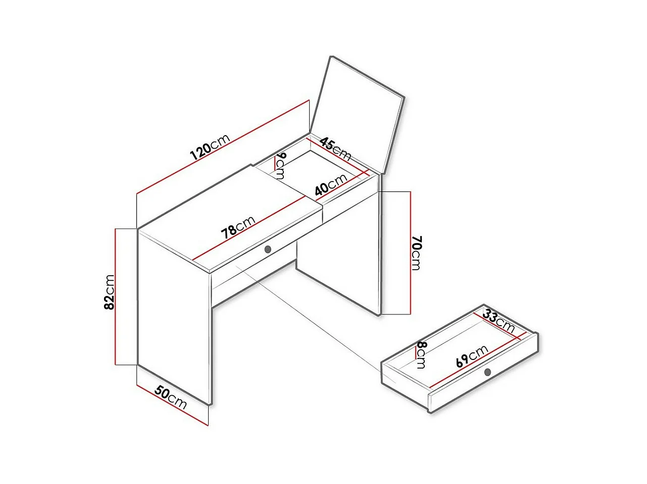 Mesa de escritório Dover 109, 8x13x5cm