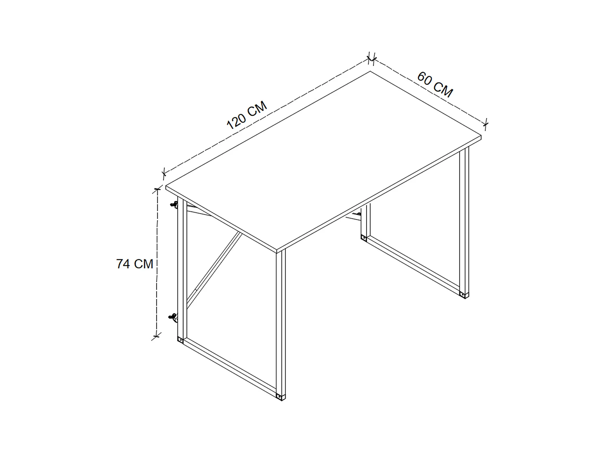 Secretária modelo NATURAL, cor carvalho-nórdico de 54mm de espessura-Pernas de metal branco 120x60x73cm