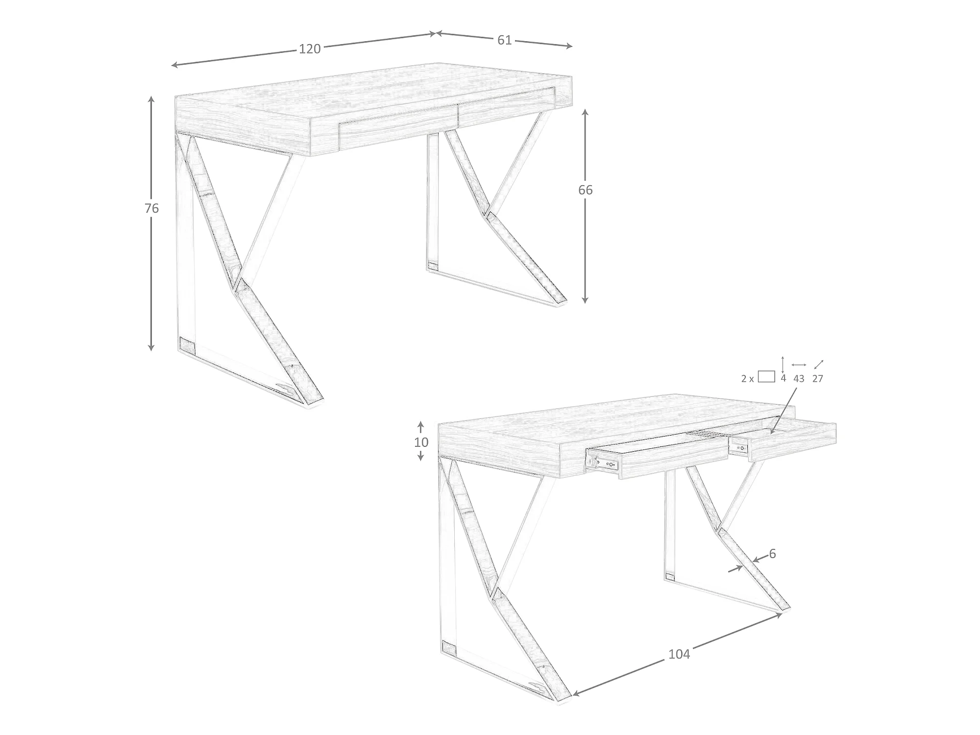 Secretária em madeira branca e aço cromado 3014 ANGEL CERDA