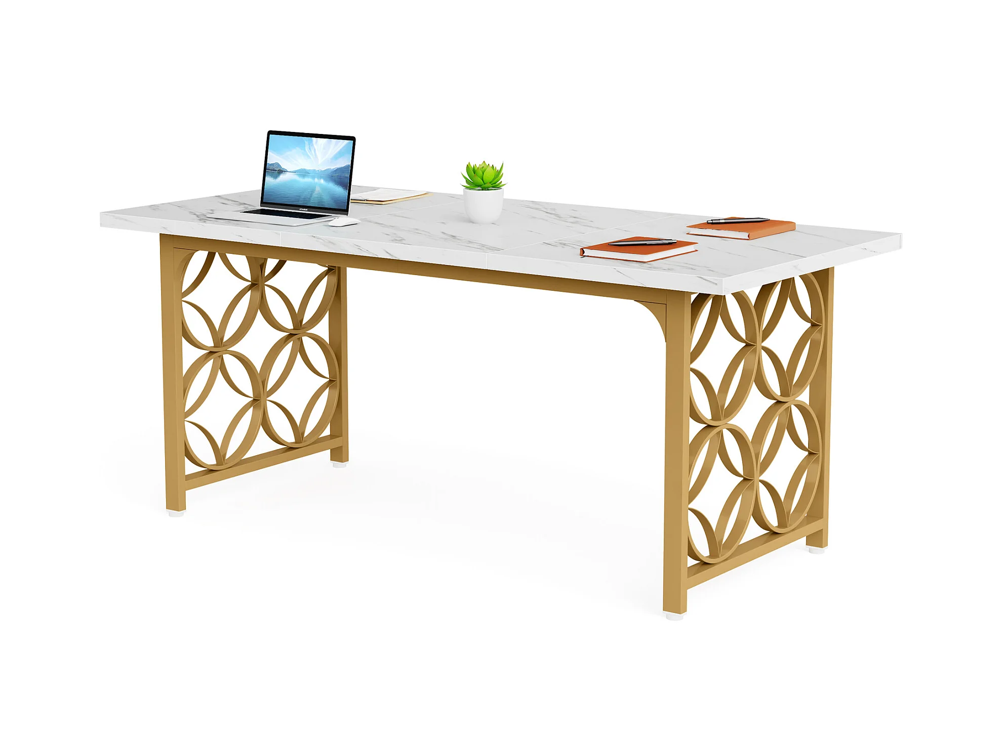 Mesa de Escritório para Computador Grande de 160 cm, Mesa de Escritório Moderna com Estrutura de Metal Resistente