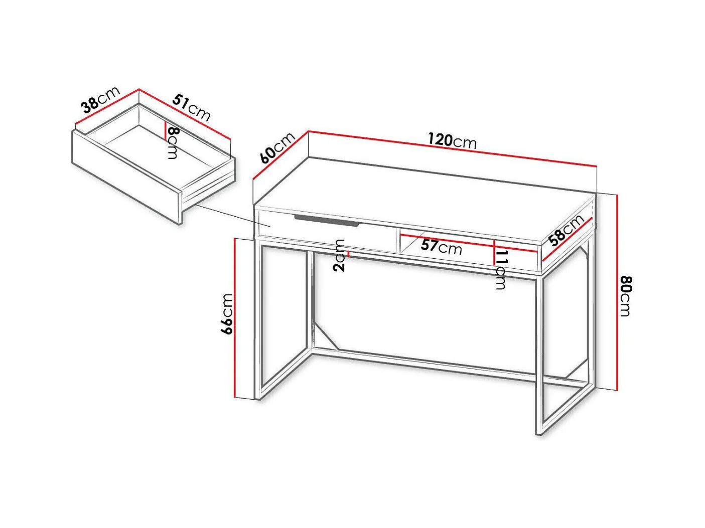 Mesa de escritório Romcama 100, Com gavetas, 8x12x6cm