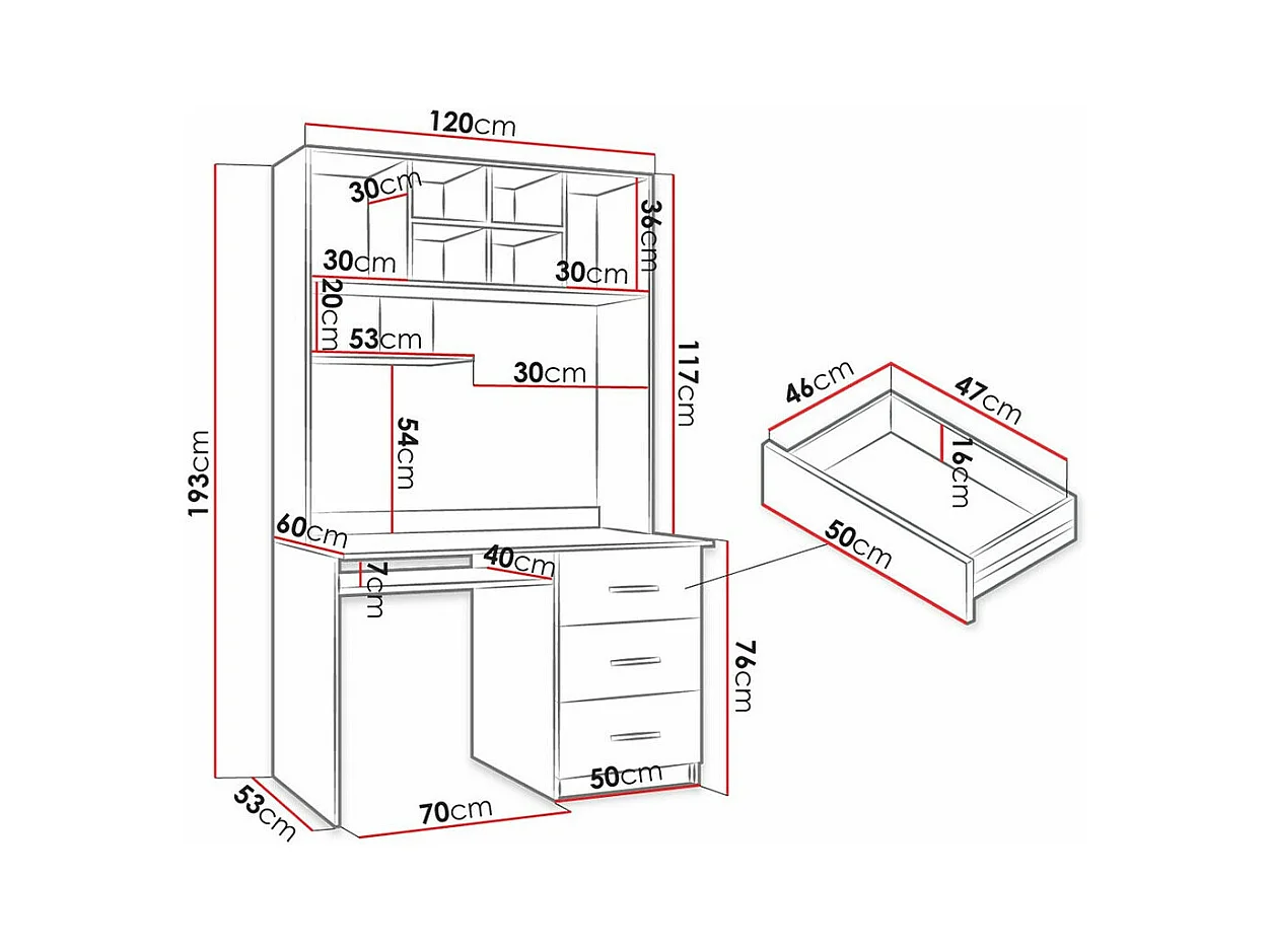 Mesa de escritório Salmere 109, Com mesa para teclado, 8x12x6cm