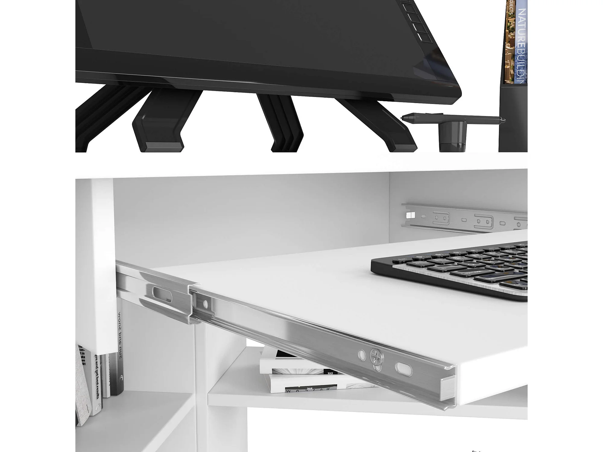 Mesa de Escritório TED Branco com Prateleira de Teclado