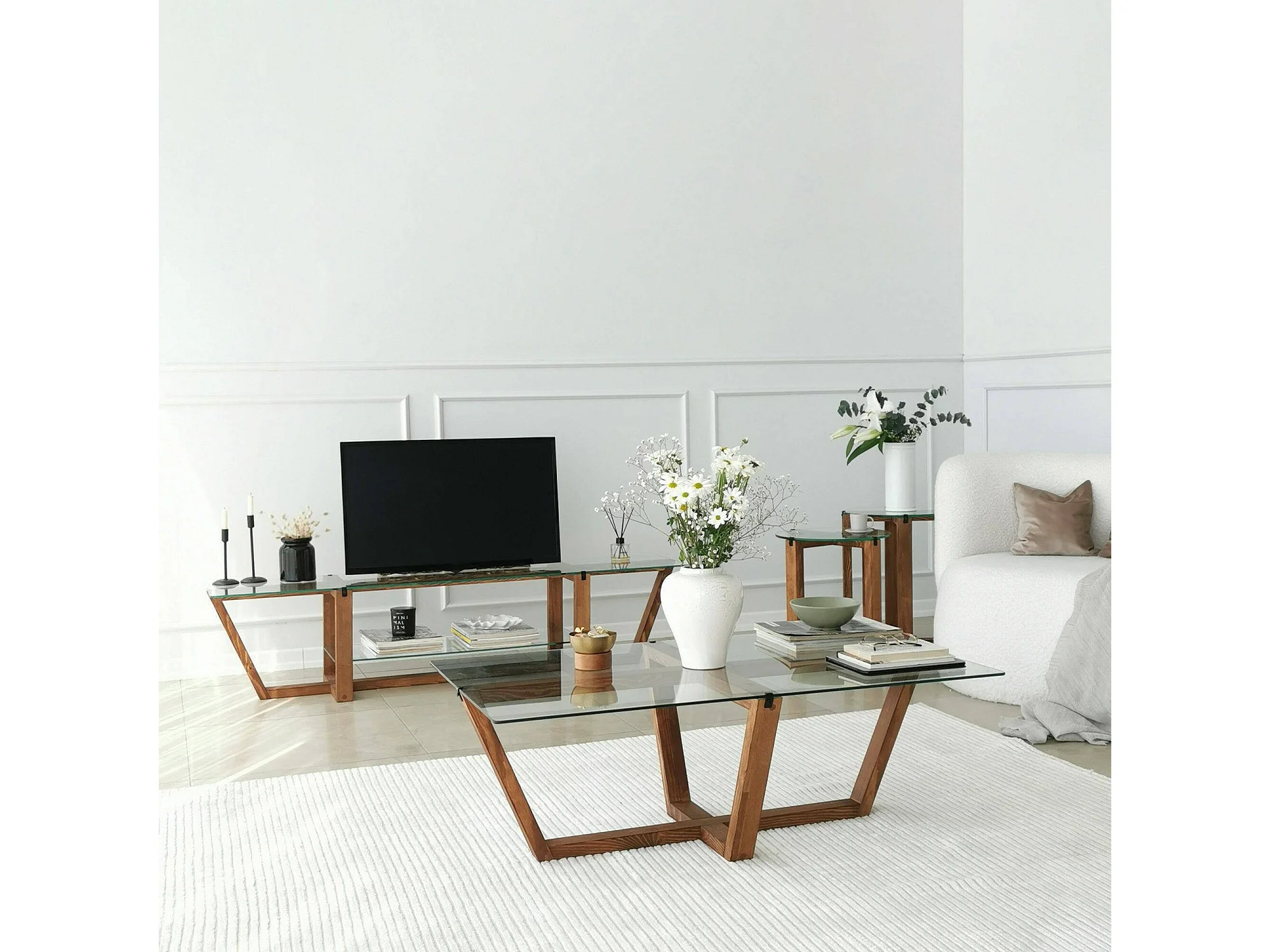 Mesa de estar Daaboubo, Mesa de café, Porta-revistas para sofá, Prateleira para sala de estar, 105x65h35 cm, Nogueira