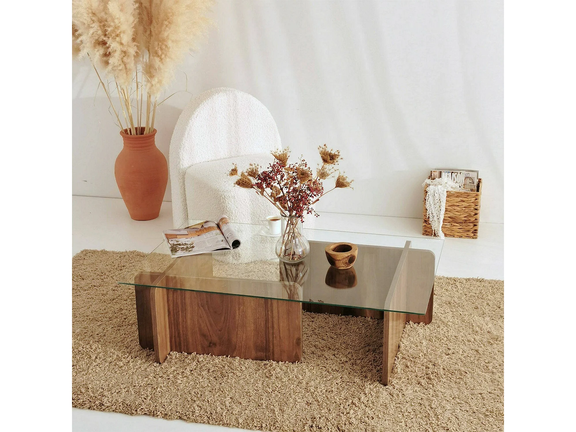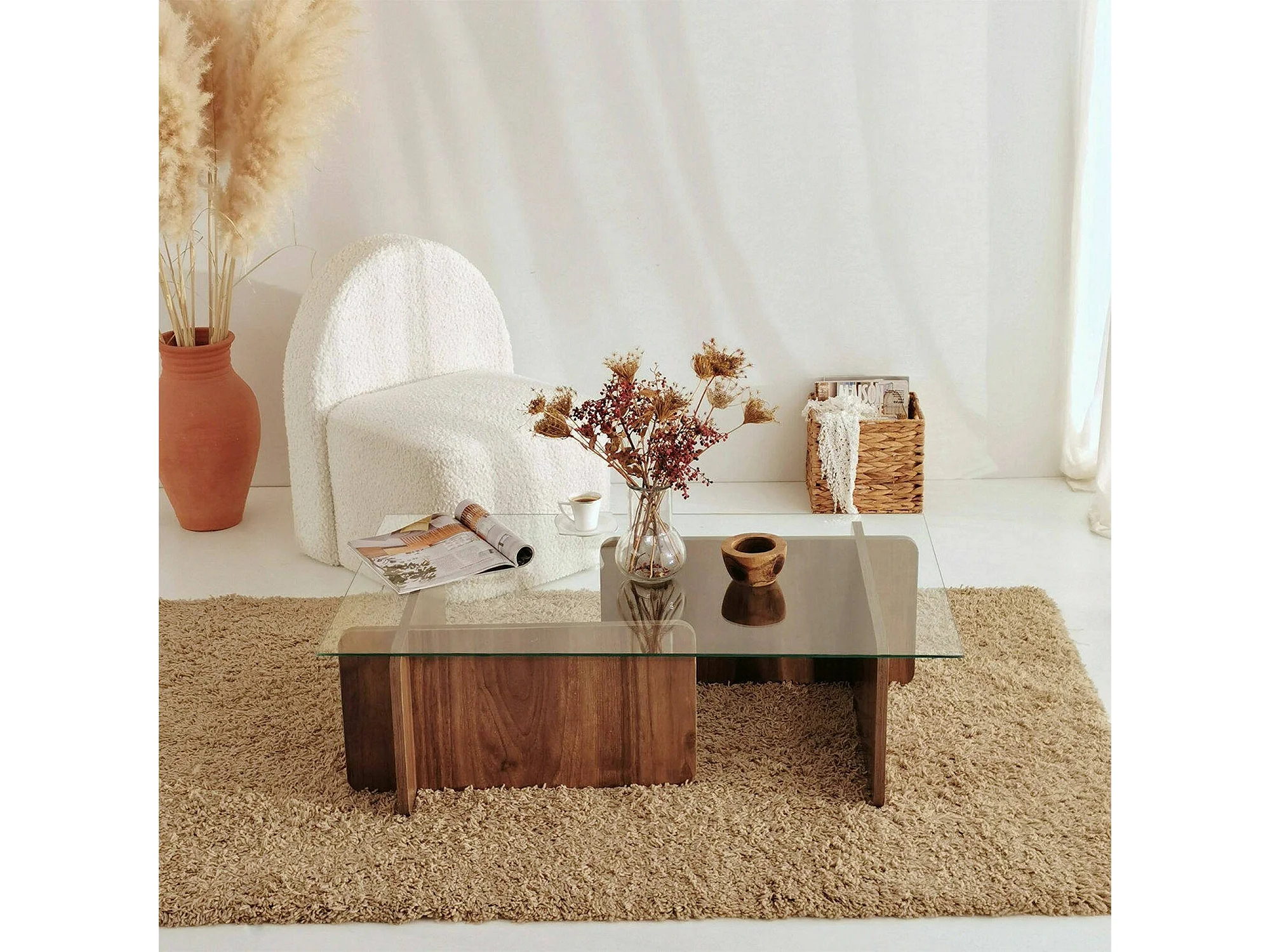 Mesa de estar Daaboubo, Mesa de café, Porta-revistas para sofá, Prateleira para sala de estar, 105x65h35 cm, Nogueira