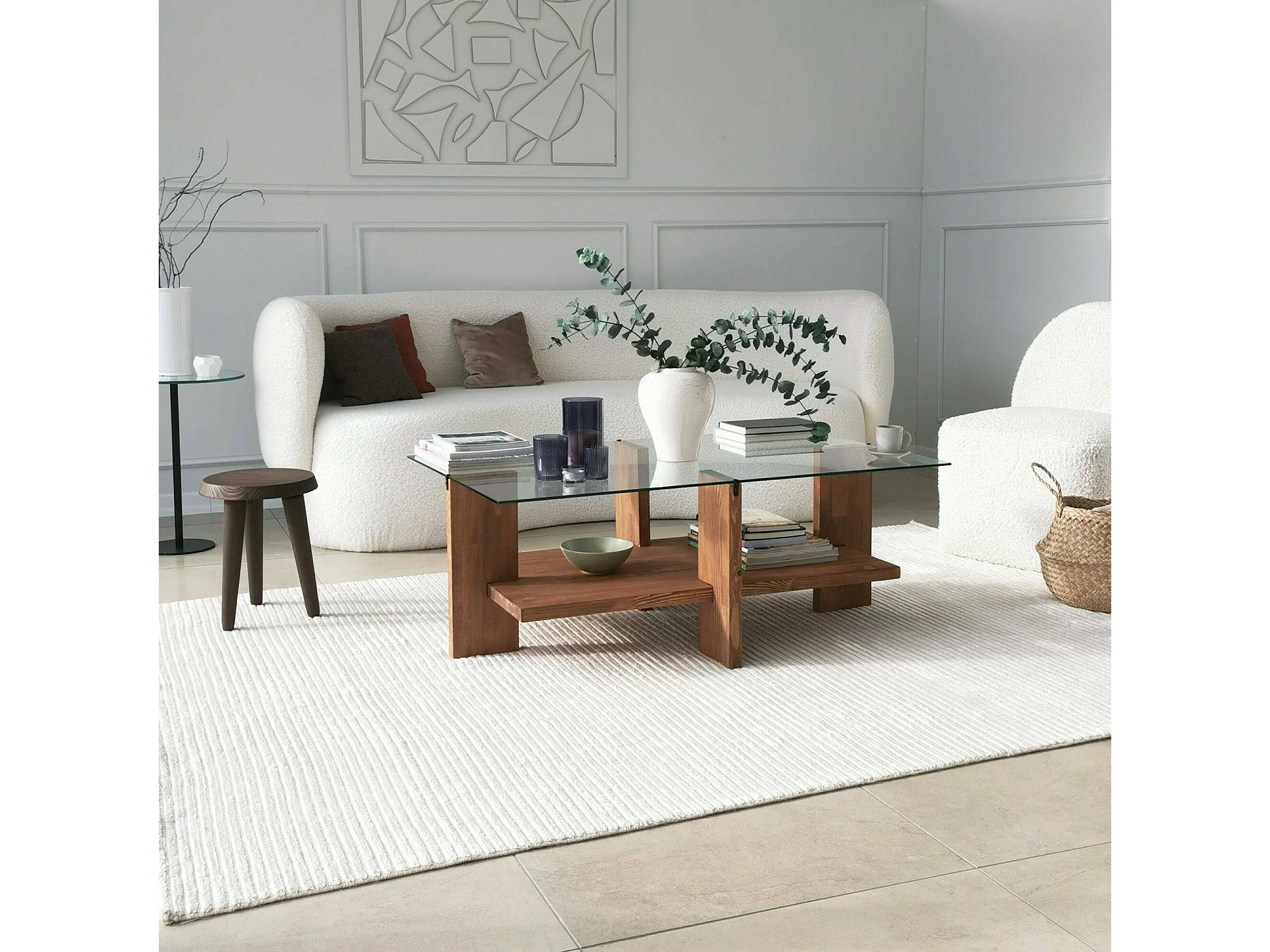Mesa de estar Dfranzon, Mesa baixa para café, Porta-revistas para sofá, Prateleira para sala de estar, 105x60h40 cm, Nogueira