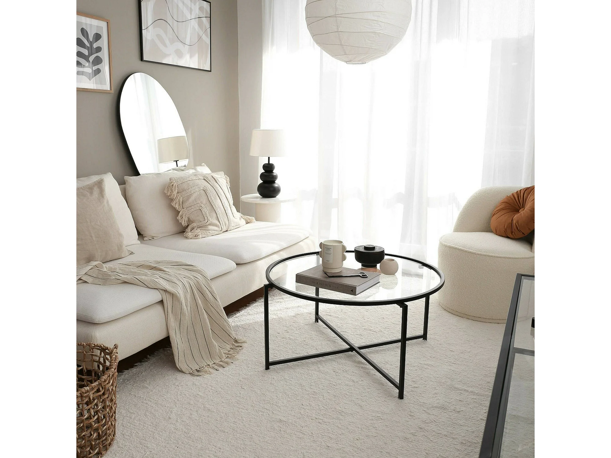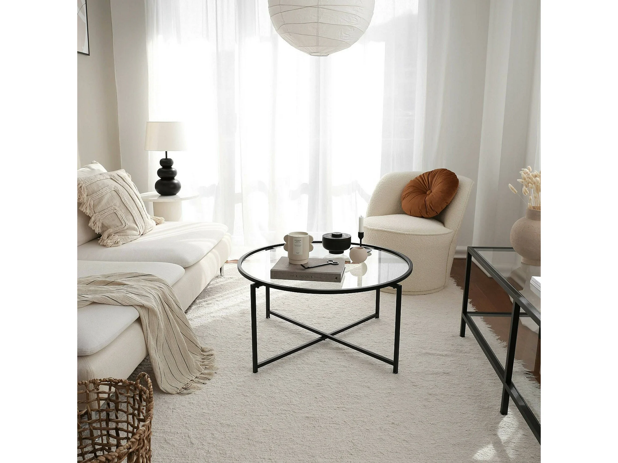 Mesa de estar Dhateboe, Mesa baixa de café, Suporte de revistas para sofá, Prateleira para sala de estar, 83x82h40 cm, Preto