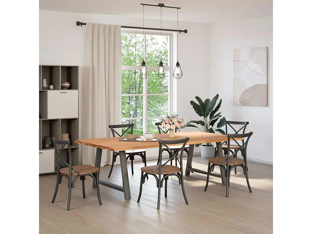 Mesa de jantar e madeira maciça de carvalho com borda natural retangular