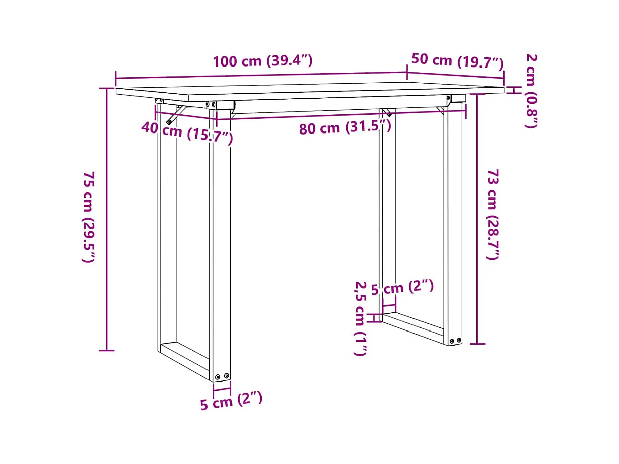 Mesa de jantar estrutura em O 100x50x75cm pinho e ferro fundido