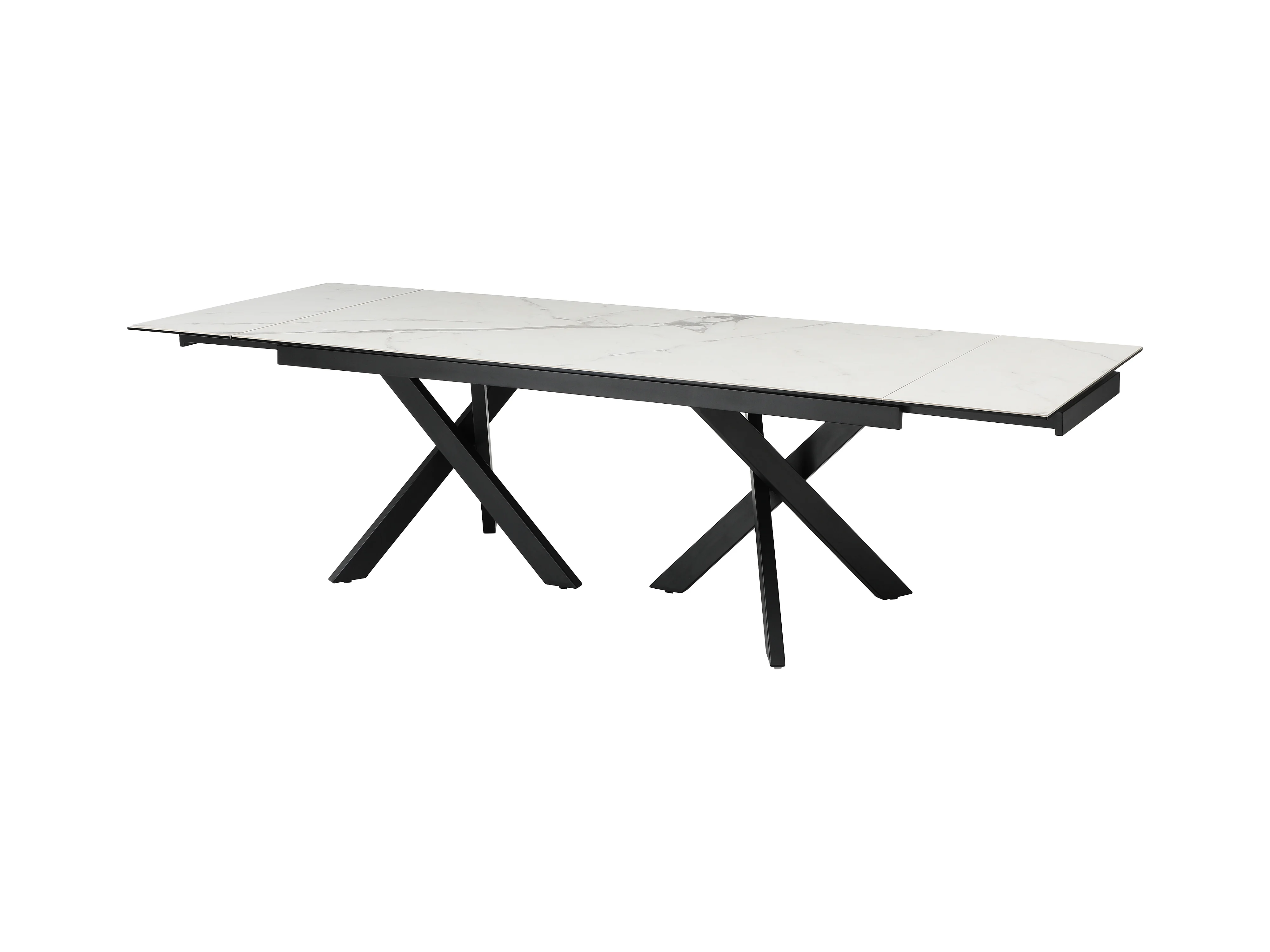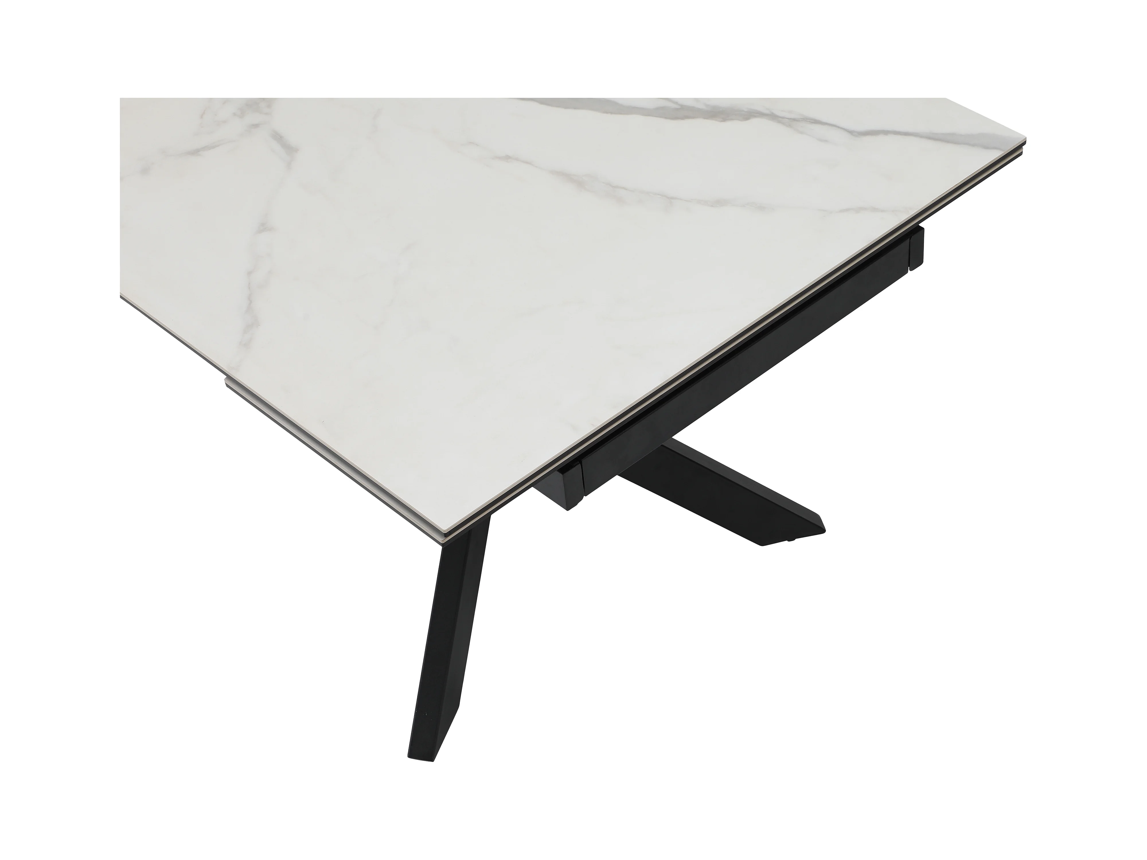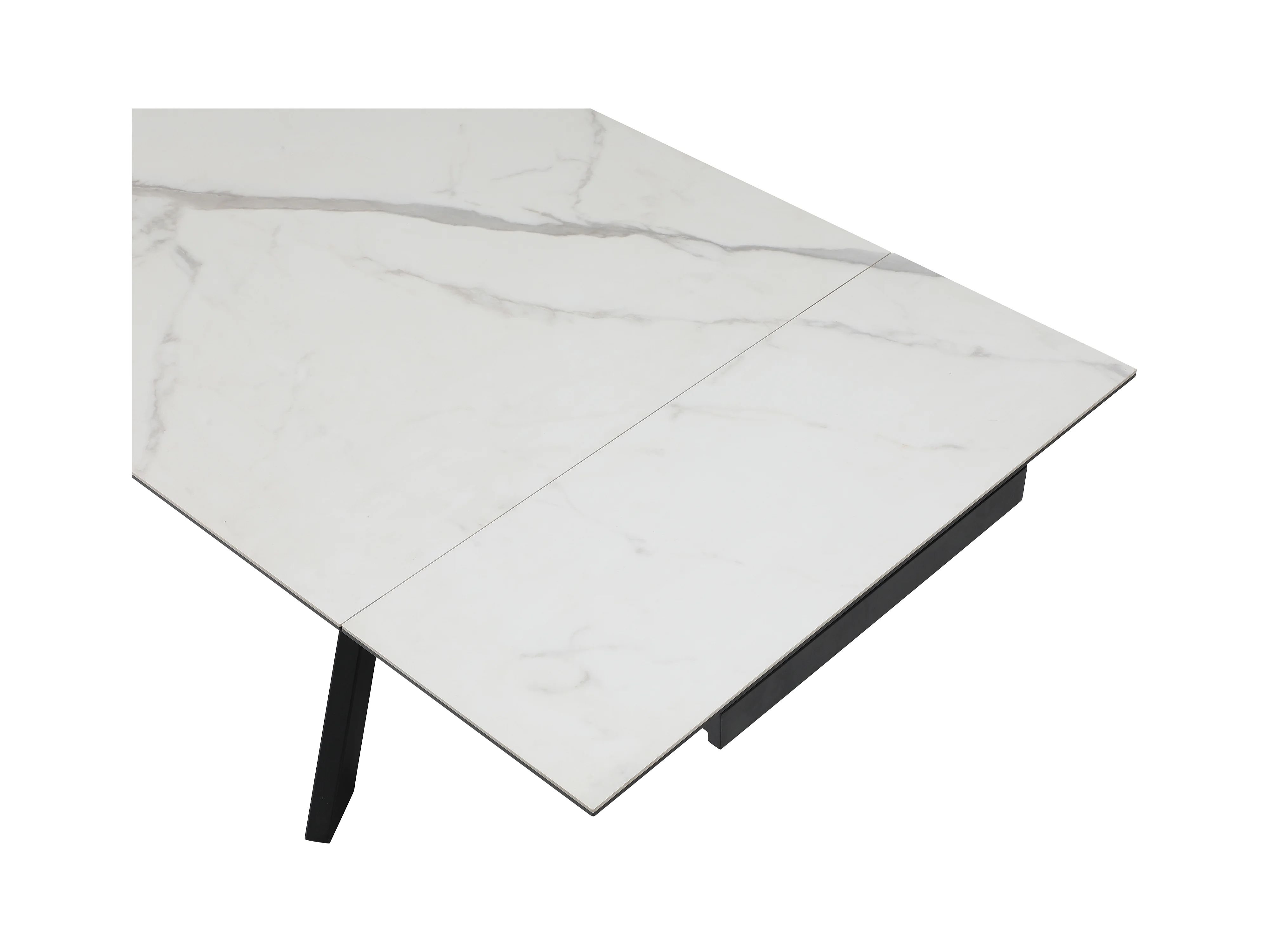 Mesa de jantar extensível 8 a 12 lugares em vidro temperado e cerâmica, efeito mármore branco e preto - MARISO