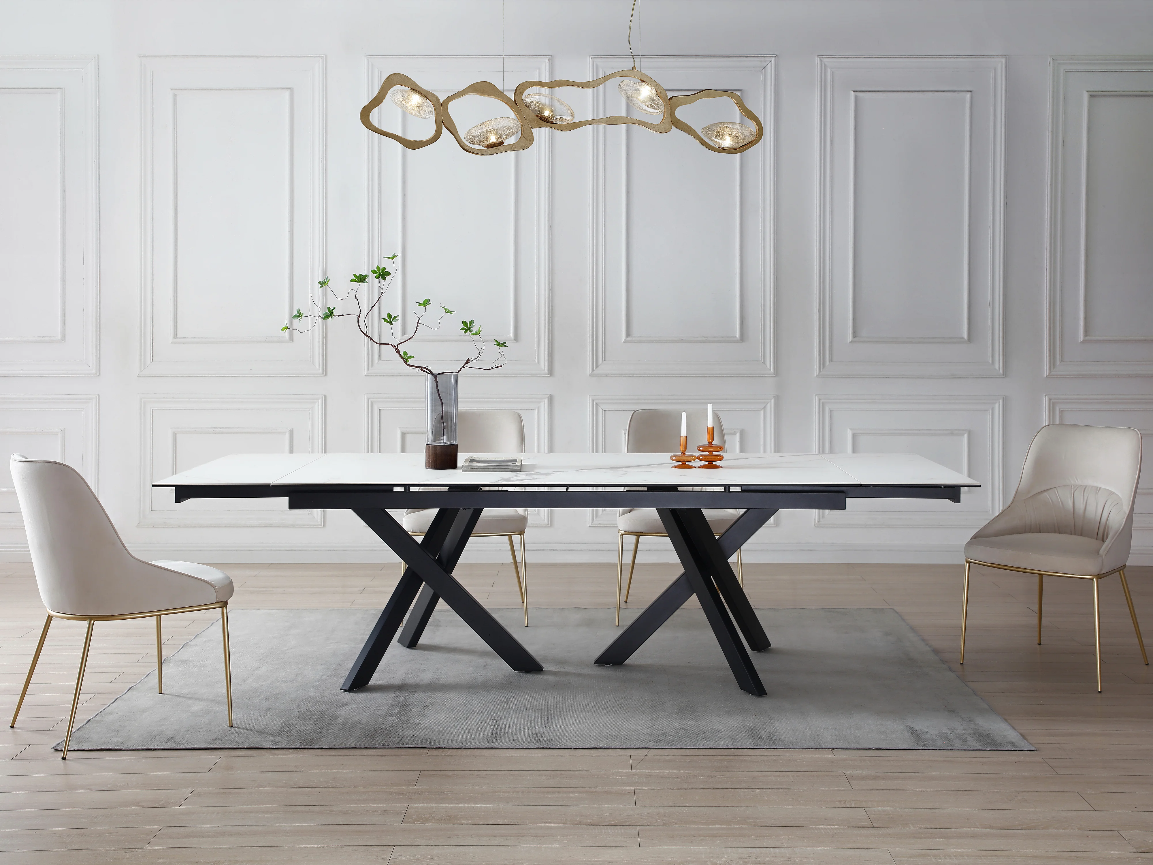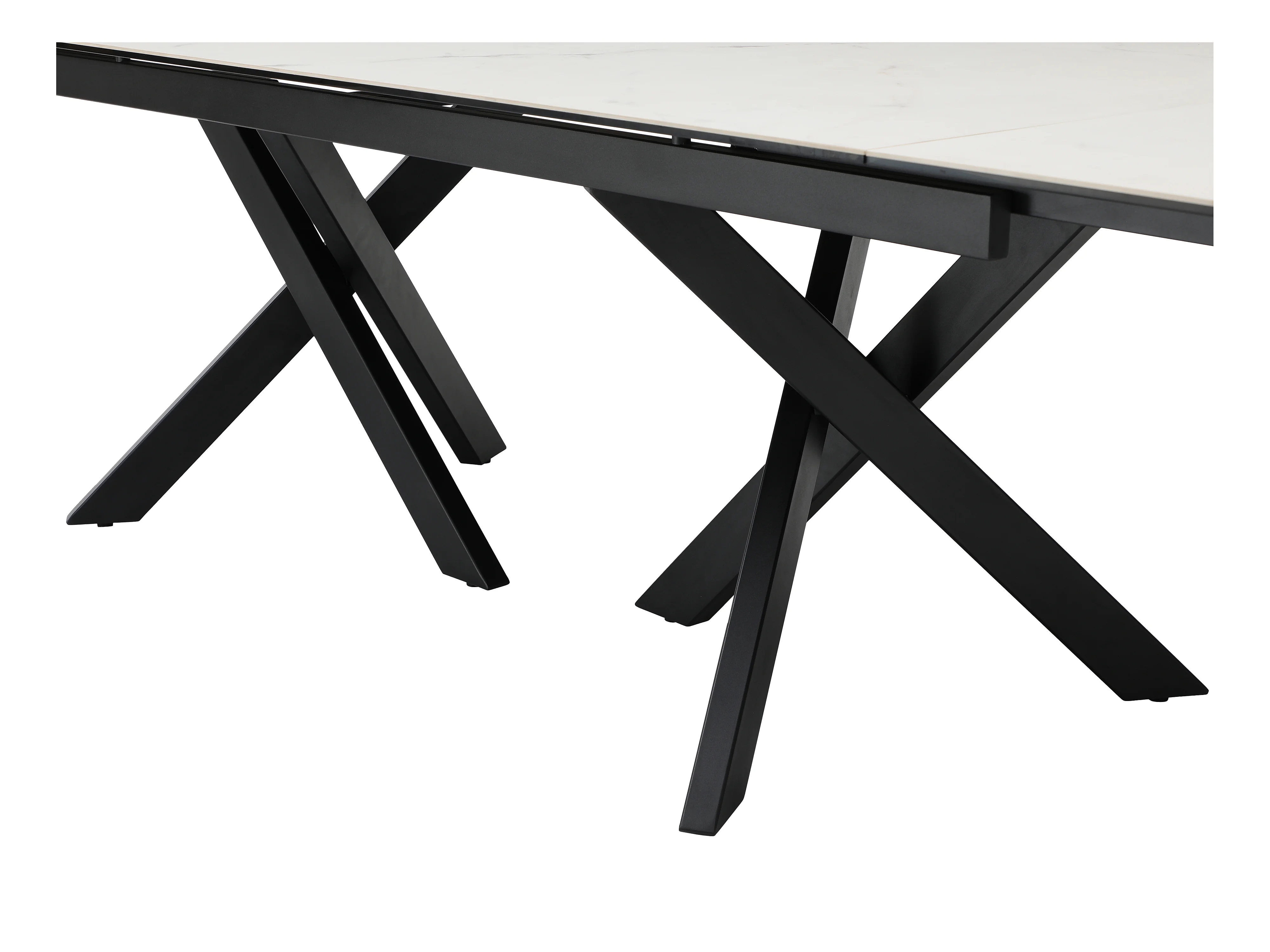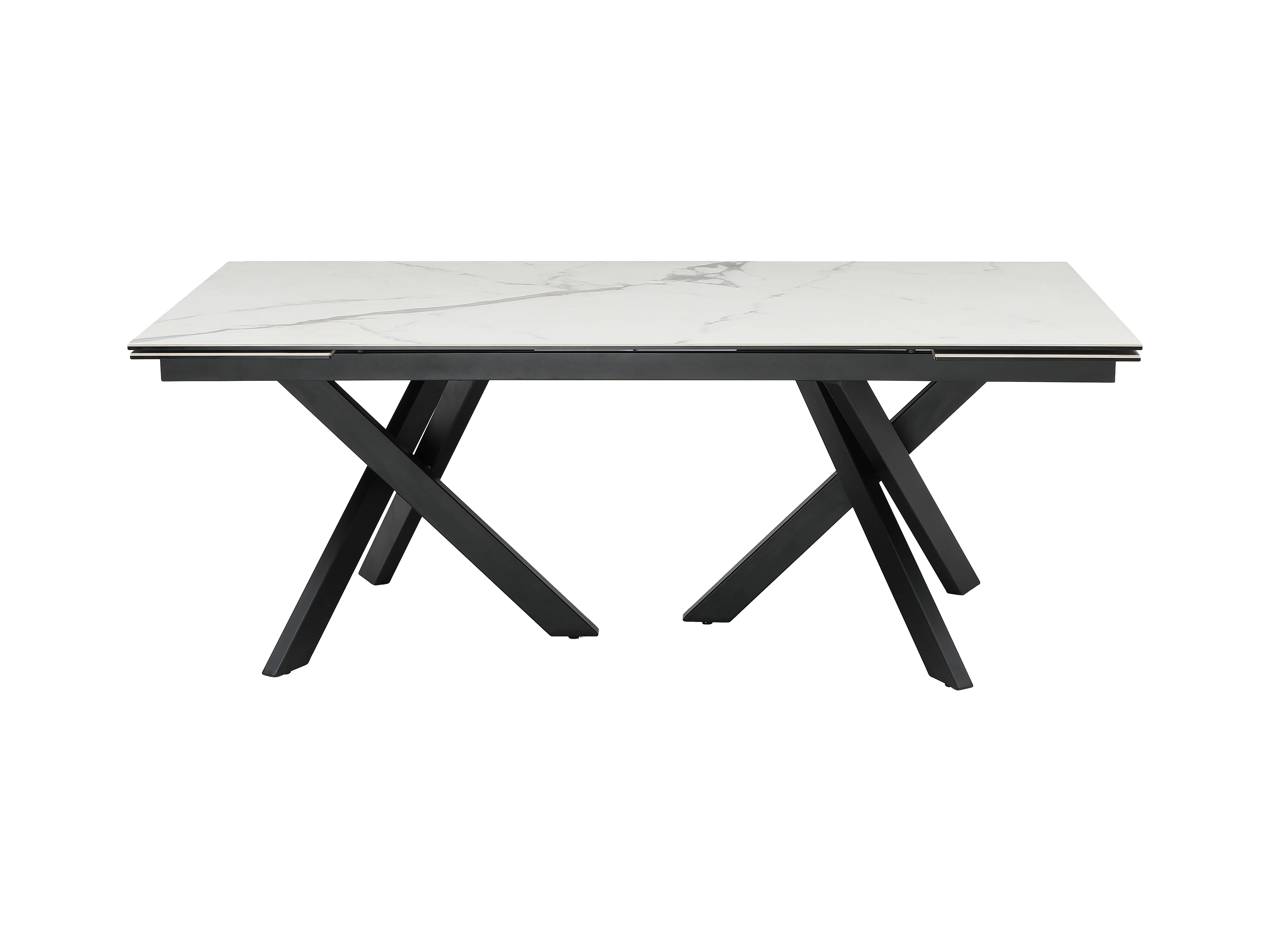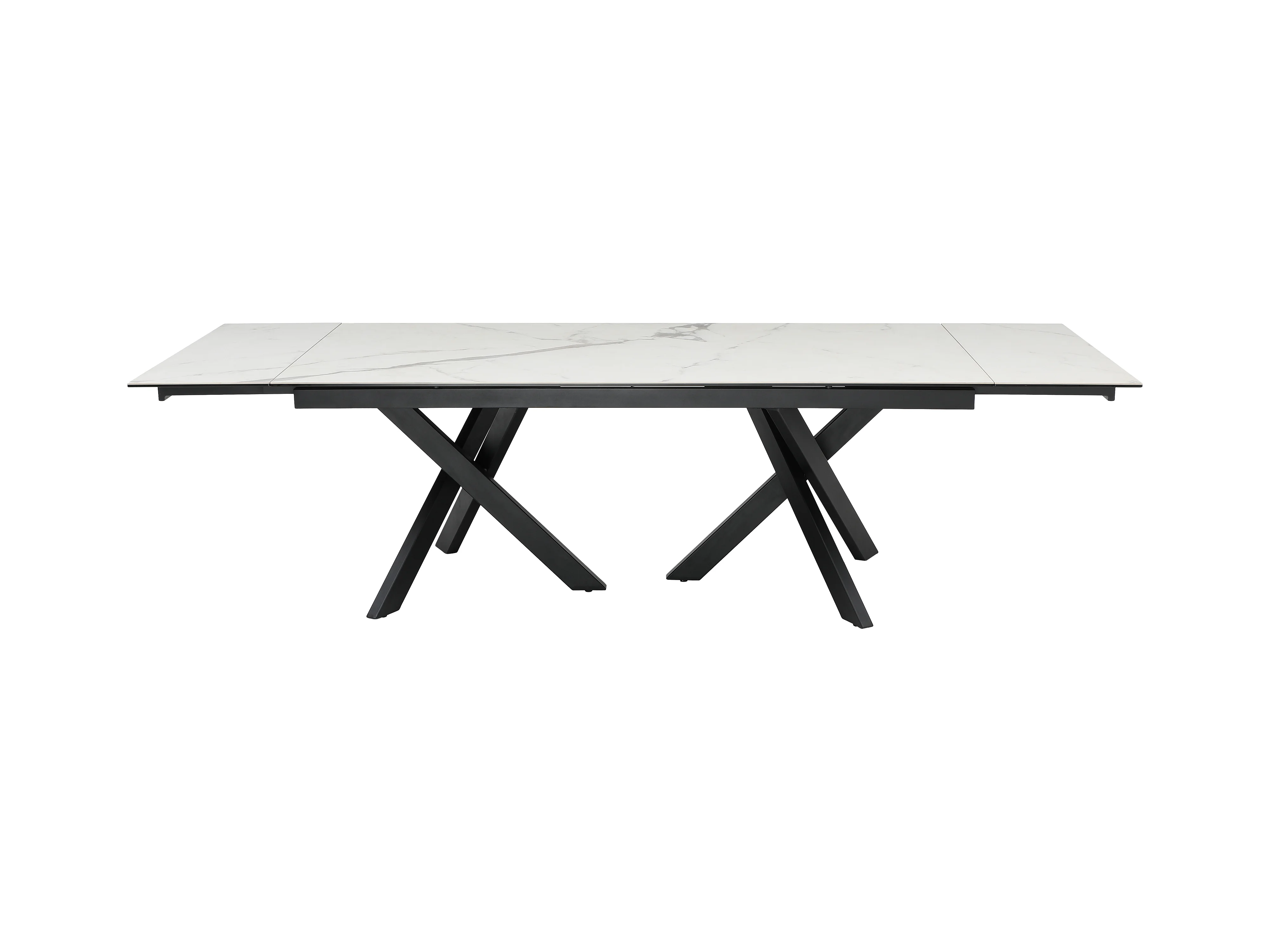 Mesa de jantar extensível 8 a 12 lugares em vidro temperado e cerâmica, efeito mármore branco e preto - MARISO