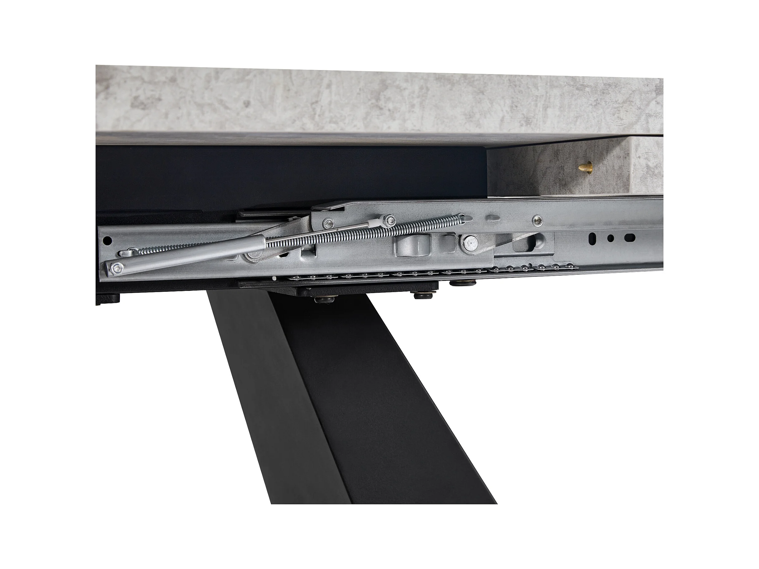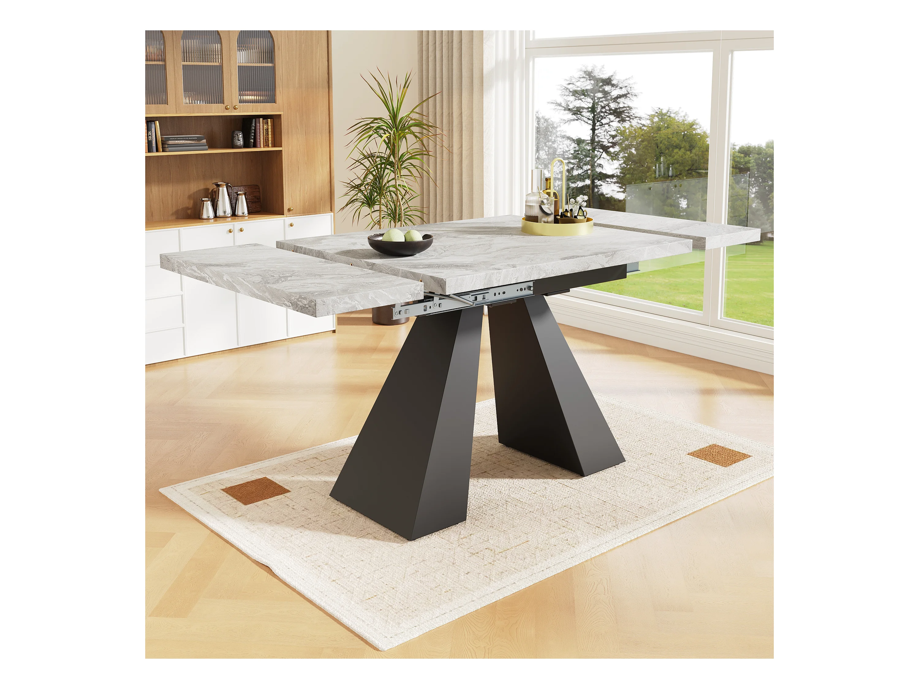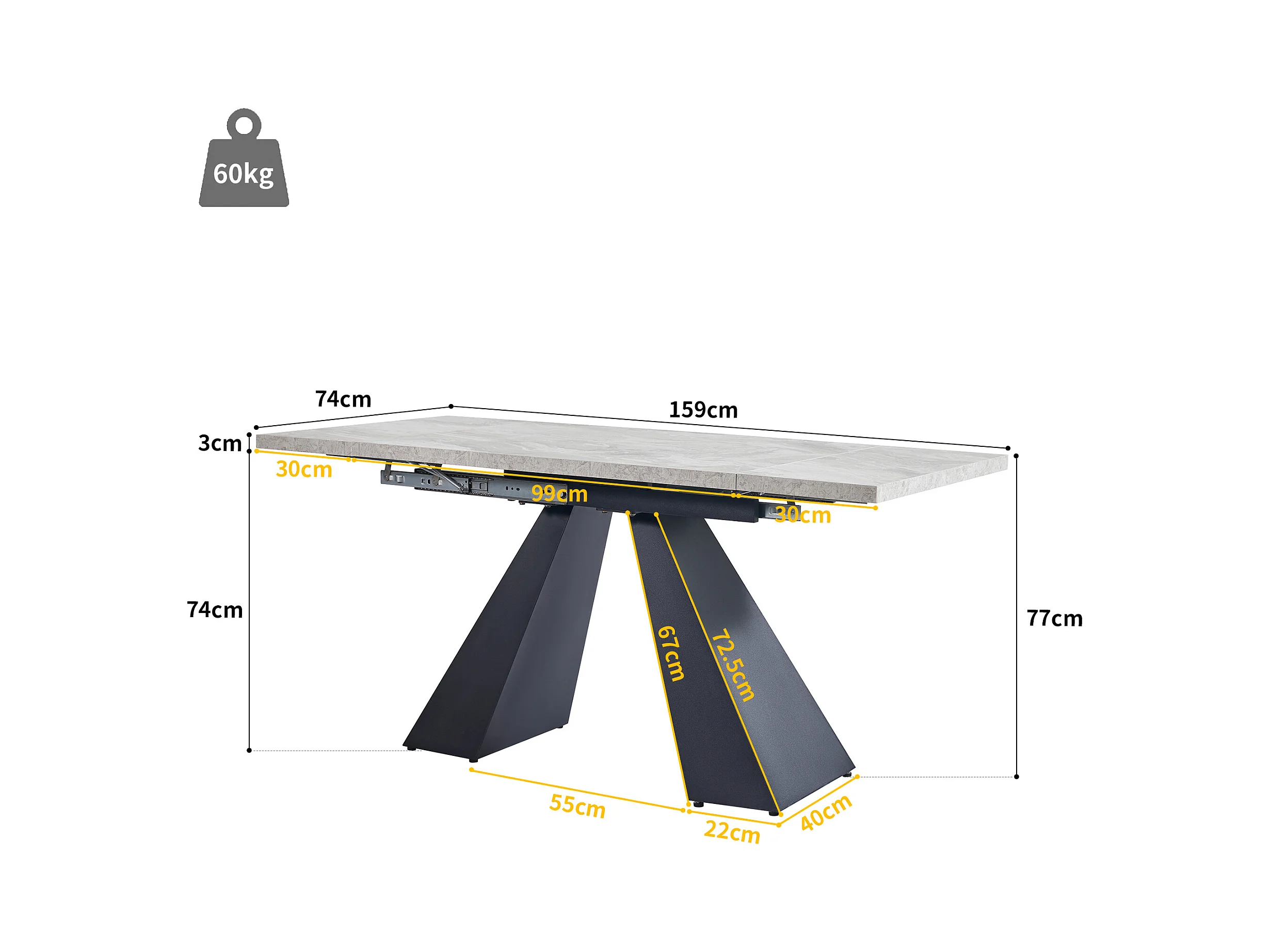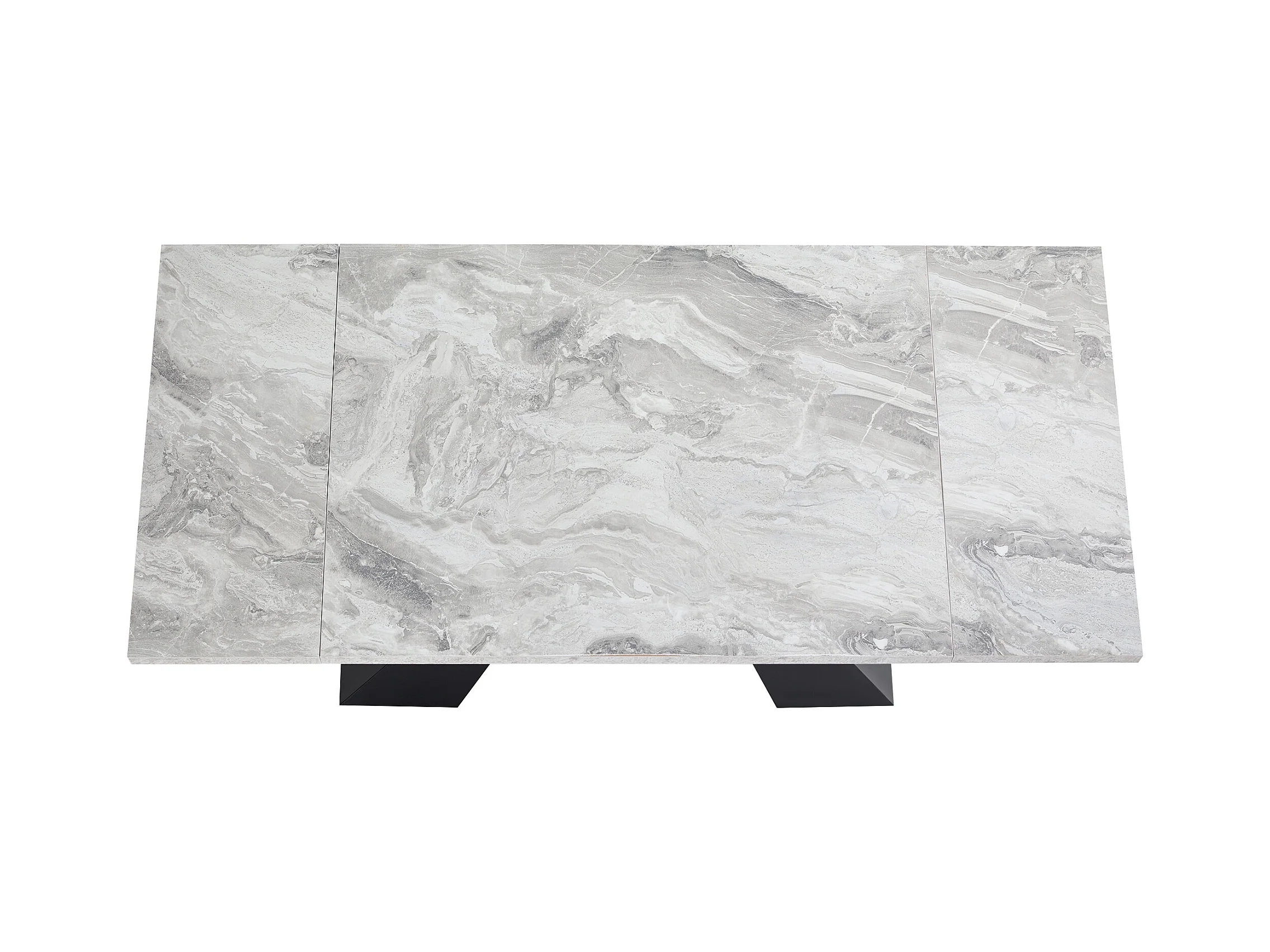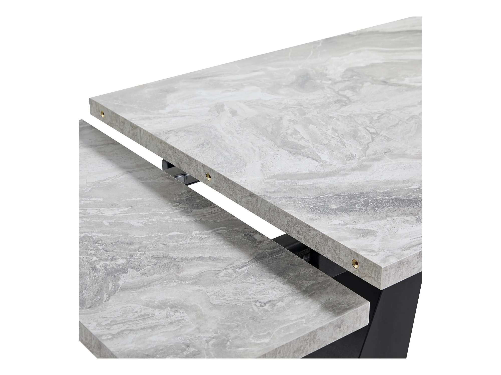 Mesa de jantar extensível - 99-159 x 74 x 77 cm - Tampo efeito mármore - MDF e metal - Cinza + preto
