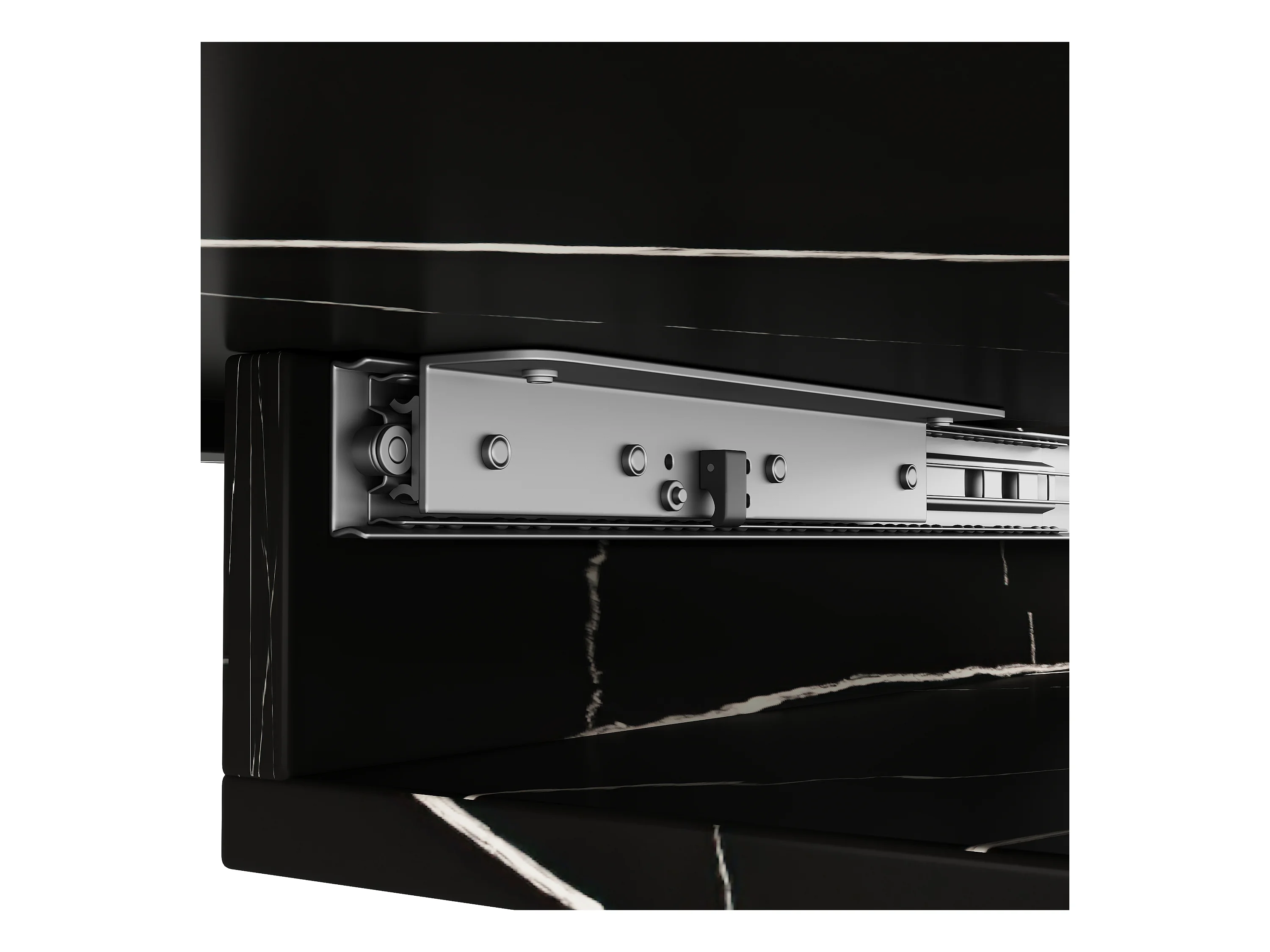 Mesa de jantar extensível para 4-6 pessoas 160x75cm em MDF com pés de aço ajustáveis, folheado de mármore preto