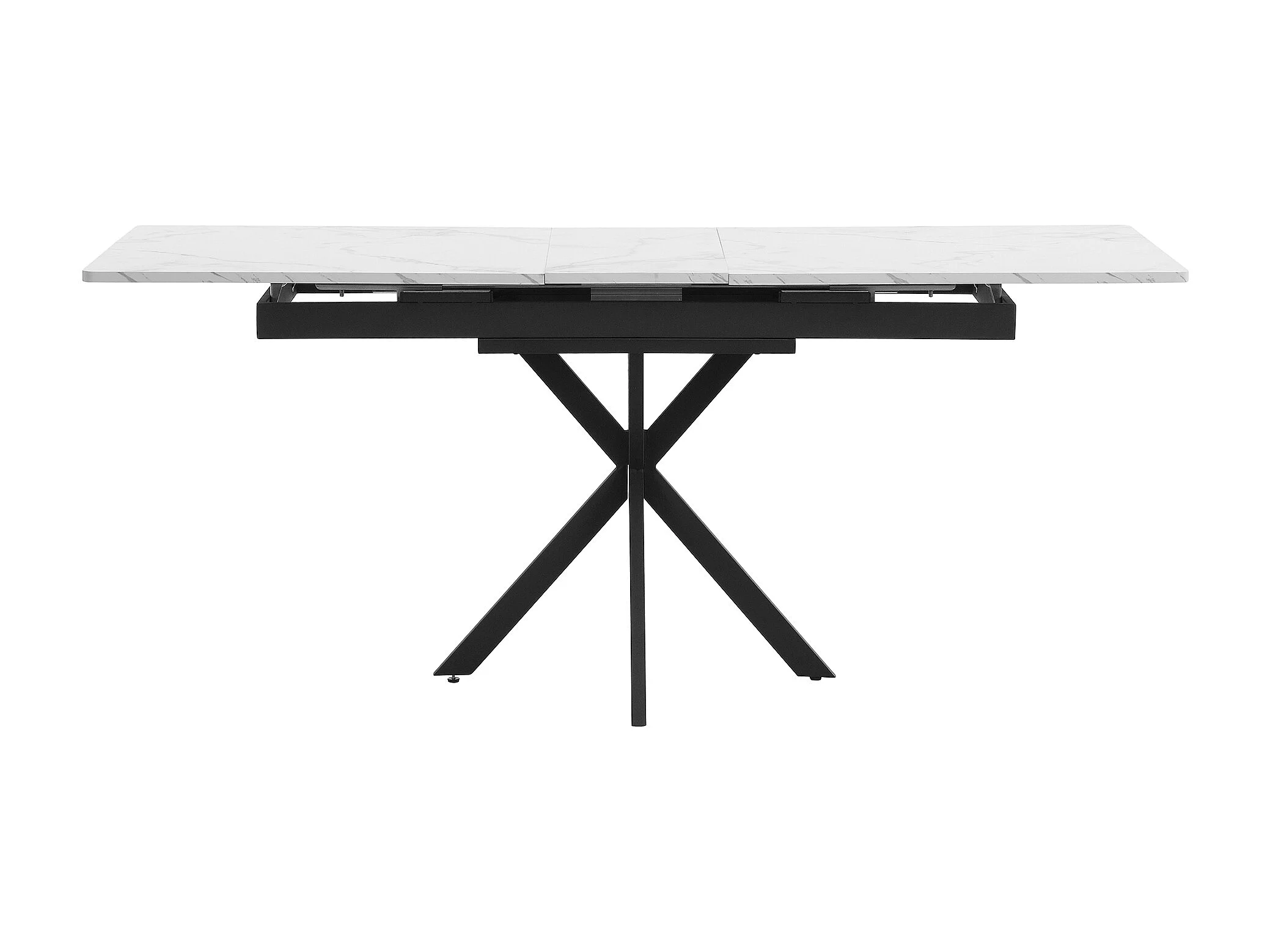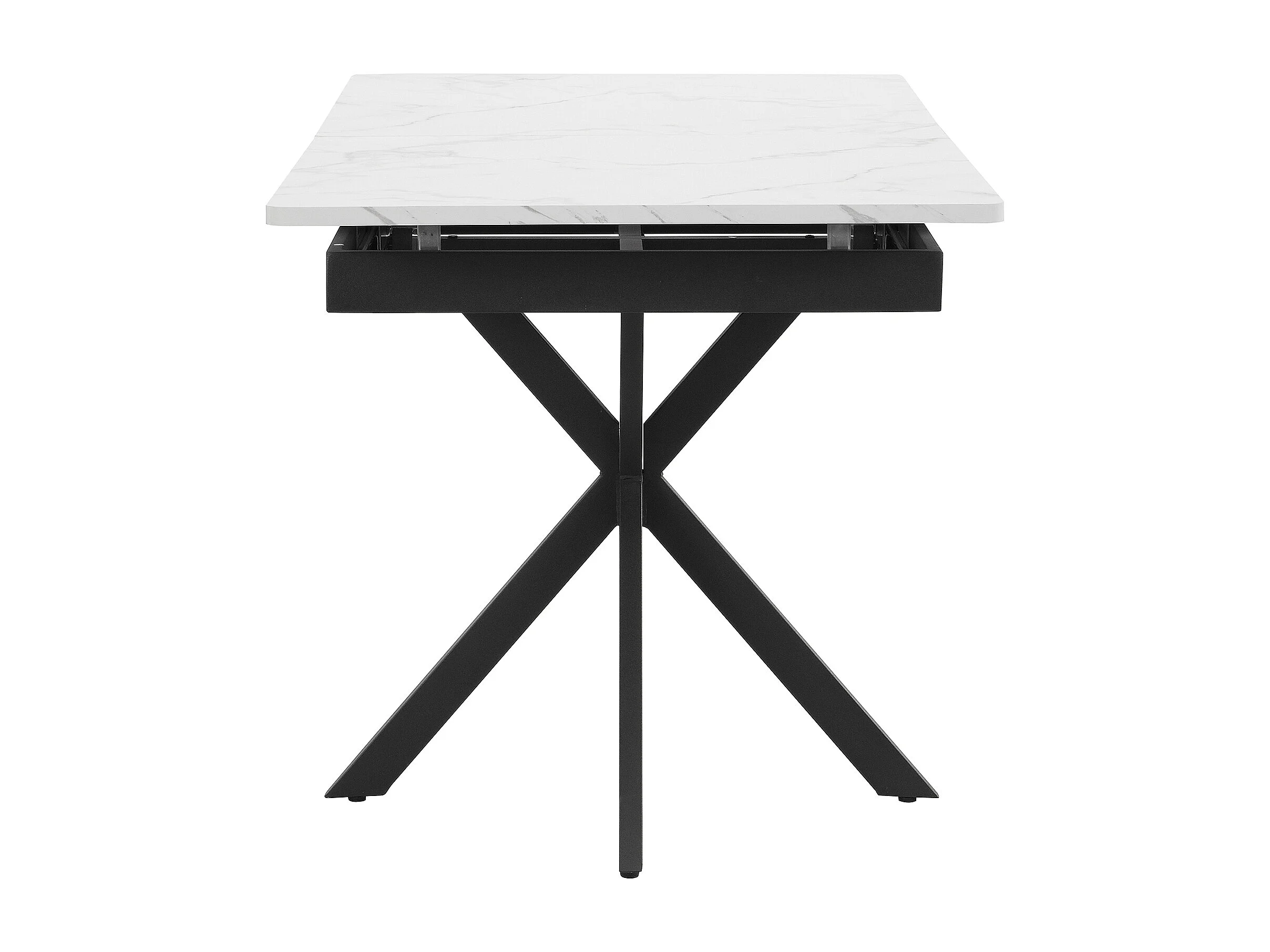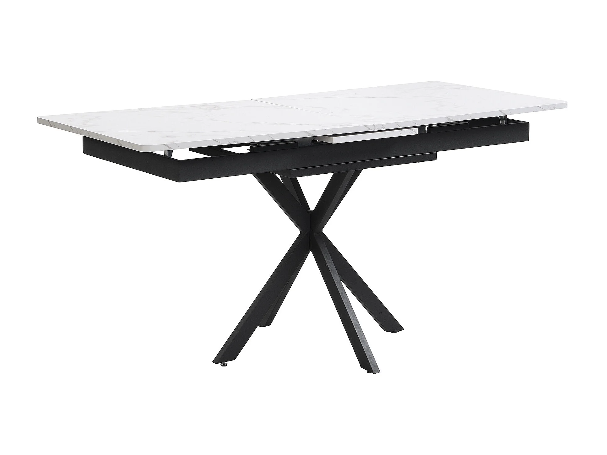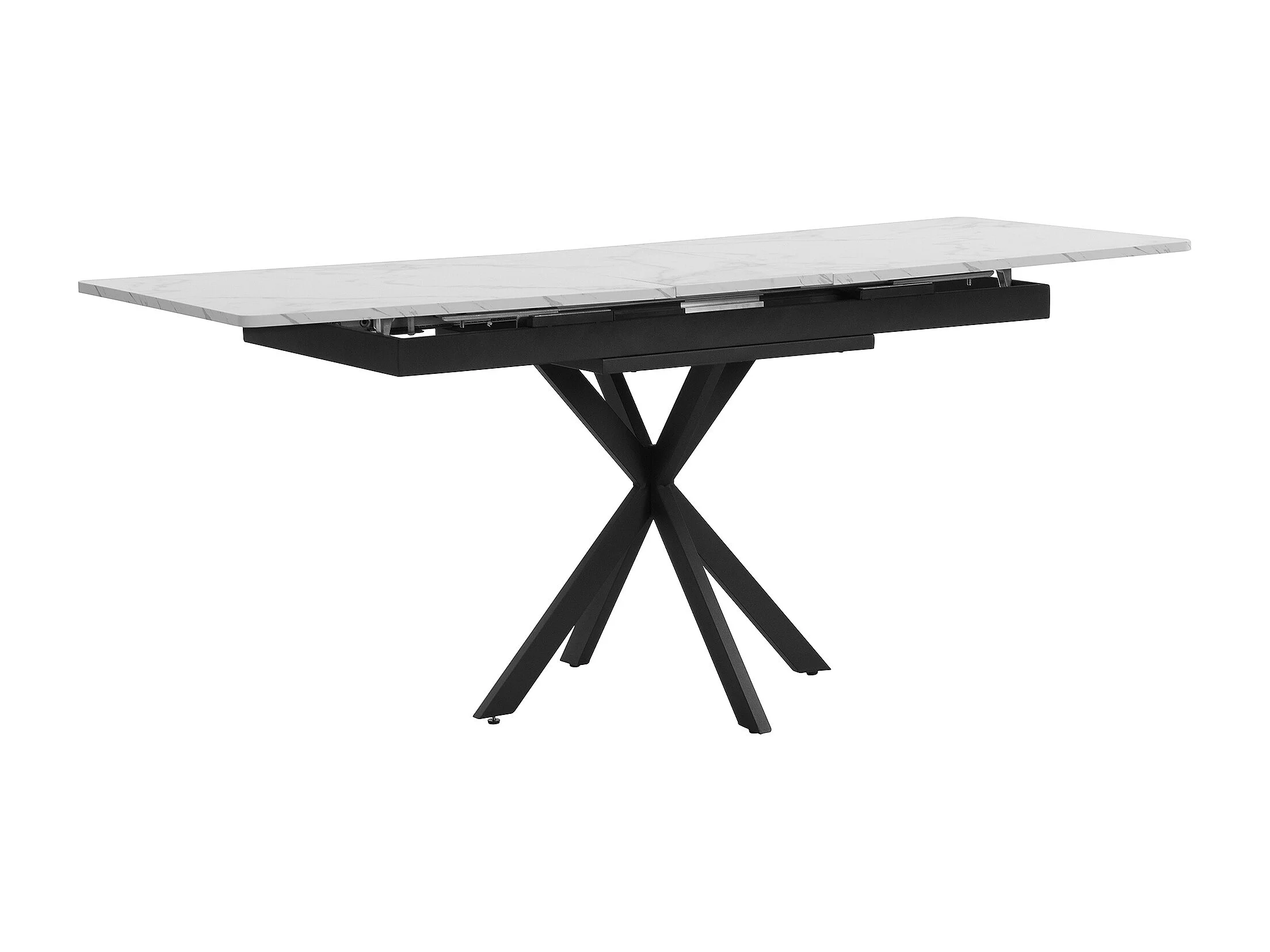 Mesa de jantar extensível para 6 a 8 talheres, folheado marmorizado + metal, preto e branco, C150/180 x C70 x A76 cm