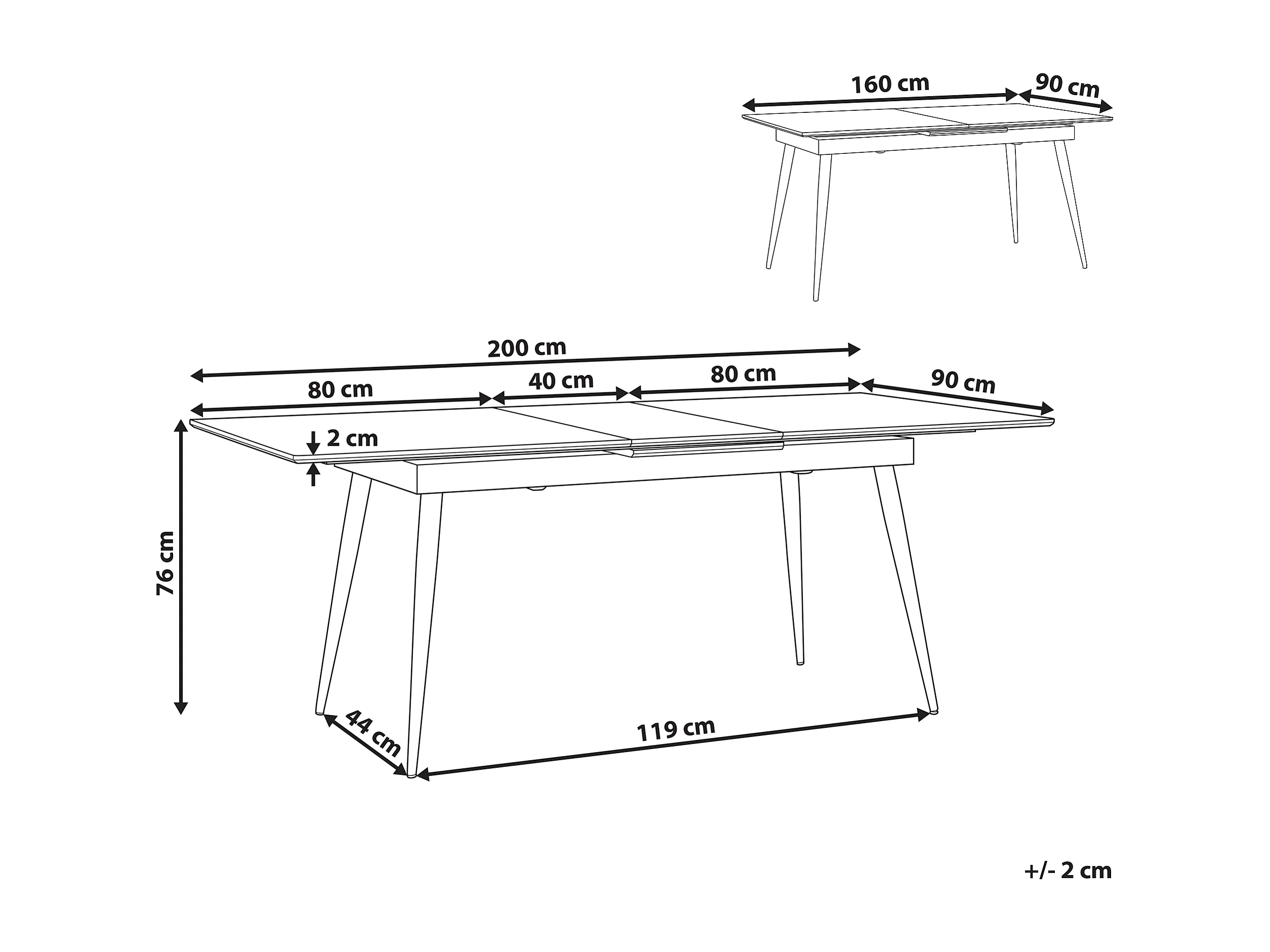 Mesa de jantar extensível MALDON Preto 160/200 cm 90 cm