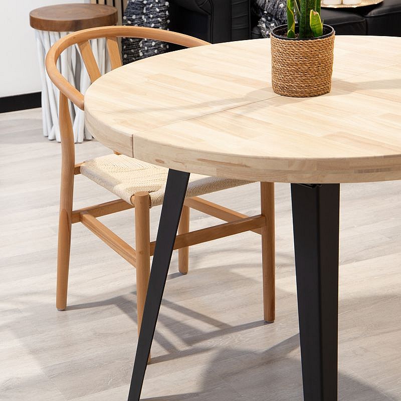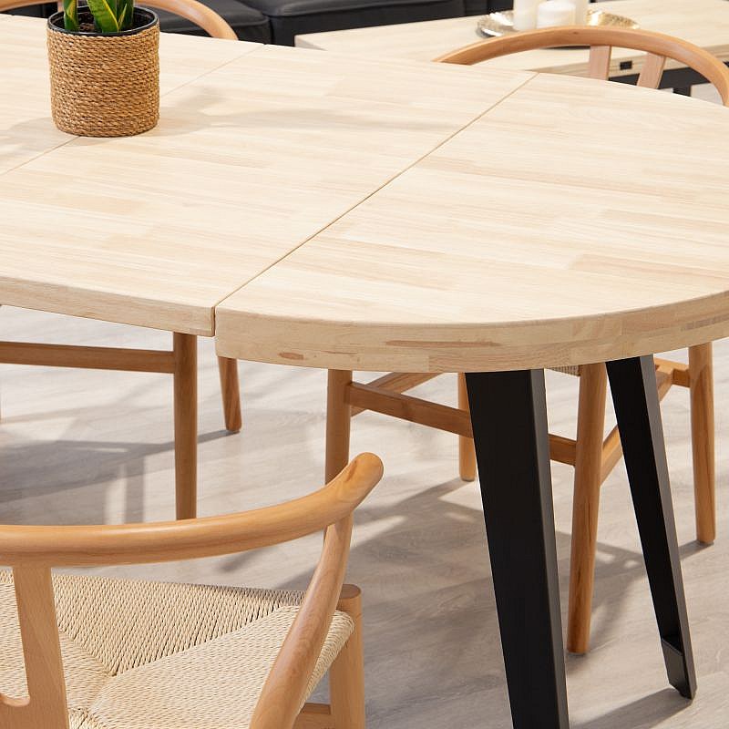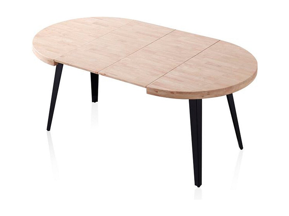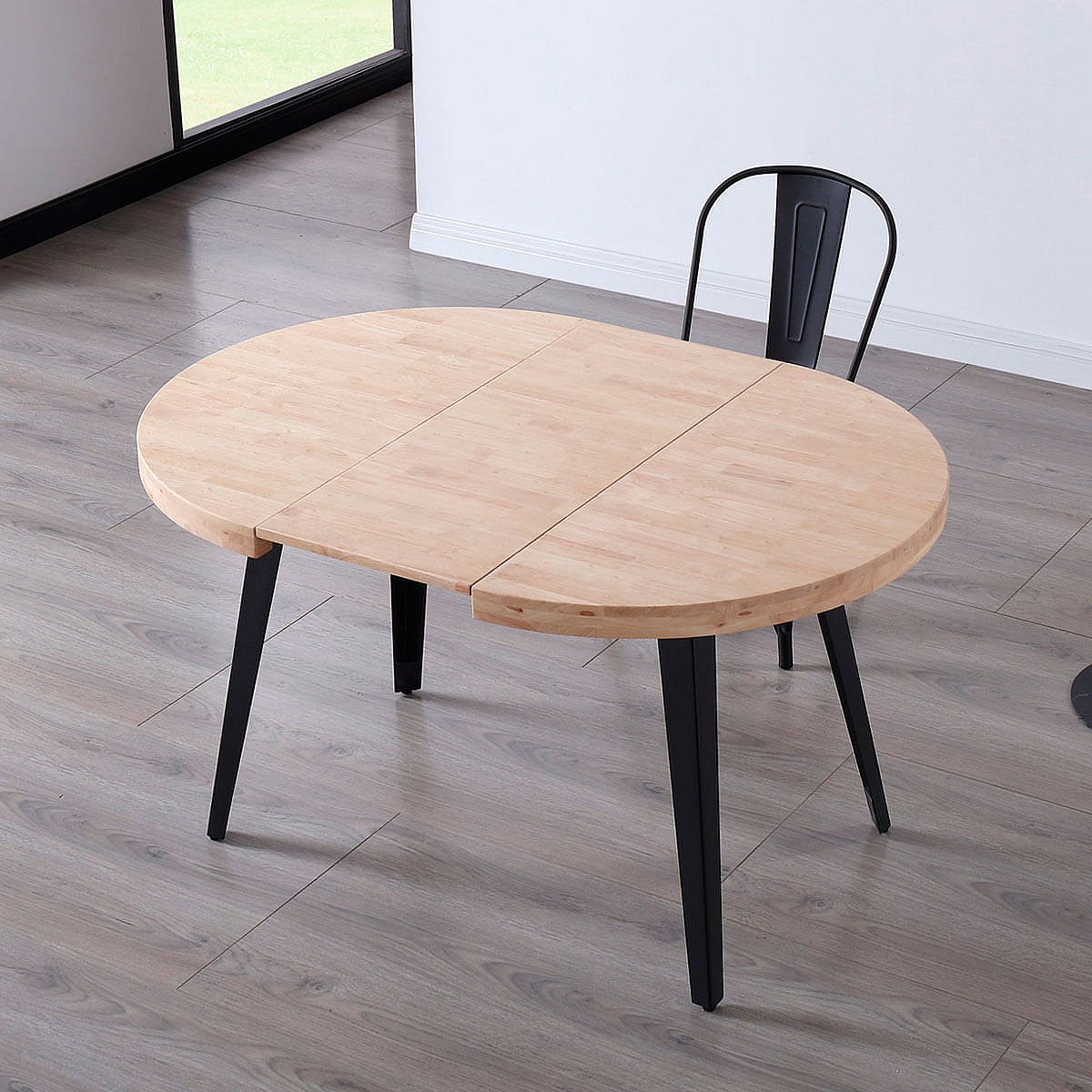 Mesa de jantar extensível redonda Bali em carvalho nórdico/preto 76x100-180x100 cm
