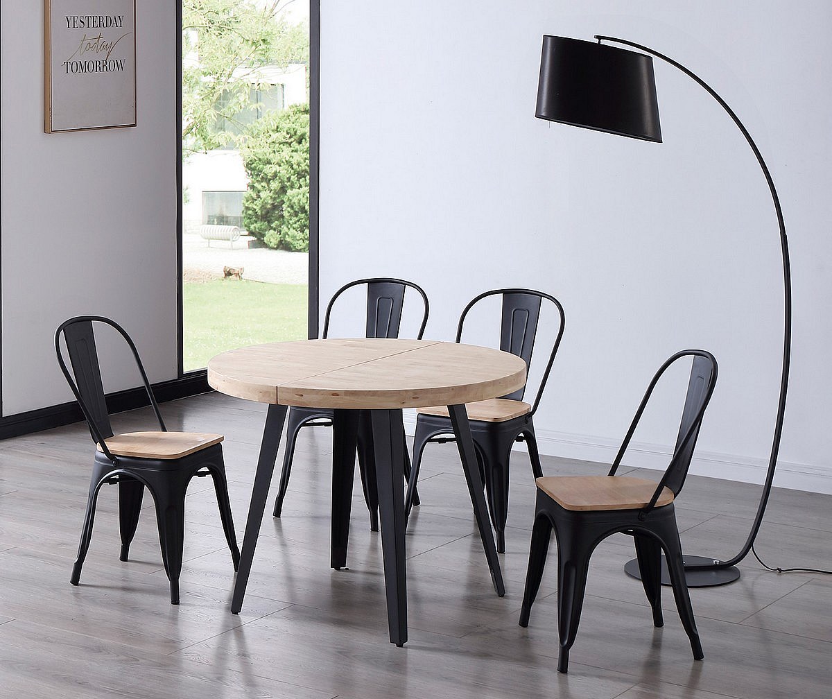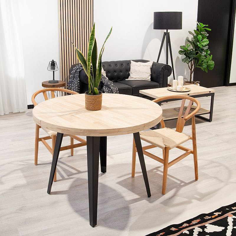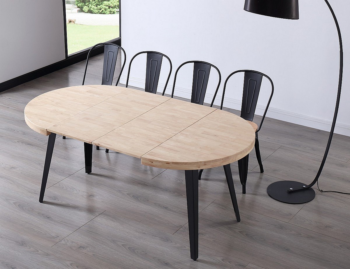 Mesa de jantar extensível redonda Bali em carvalho nórdico/preto 76x100-180x100 cm