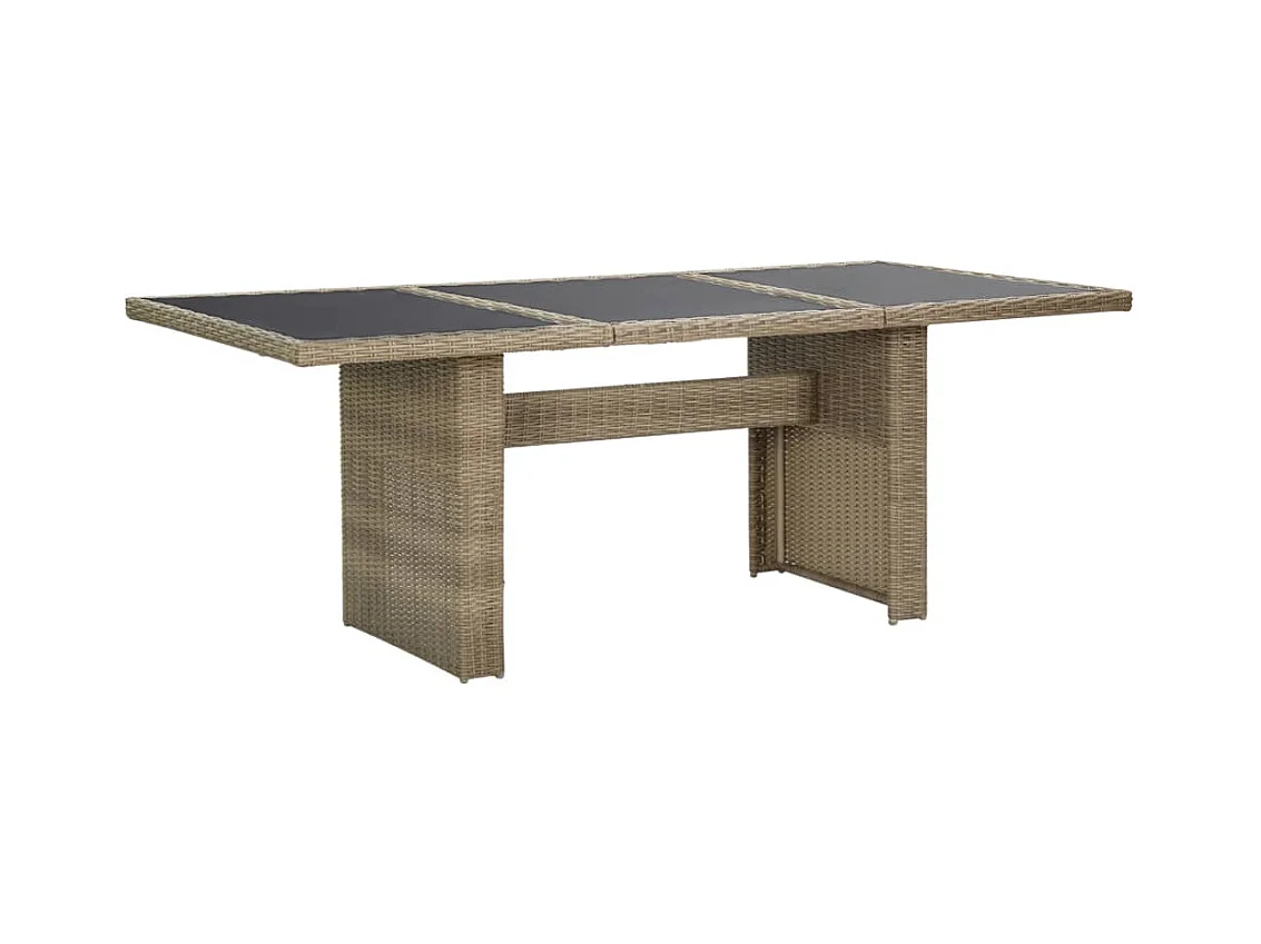 Mesa de jardim com tampo de vidro 190x80x74 cm vime PE castanho