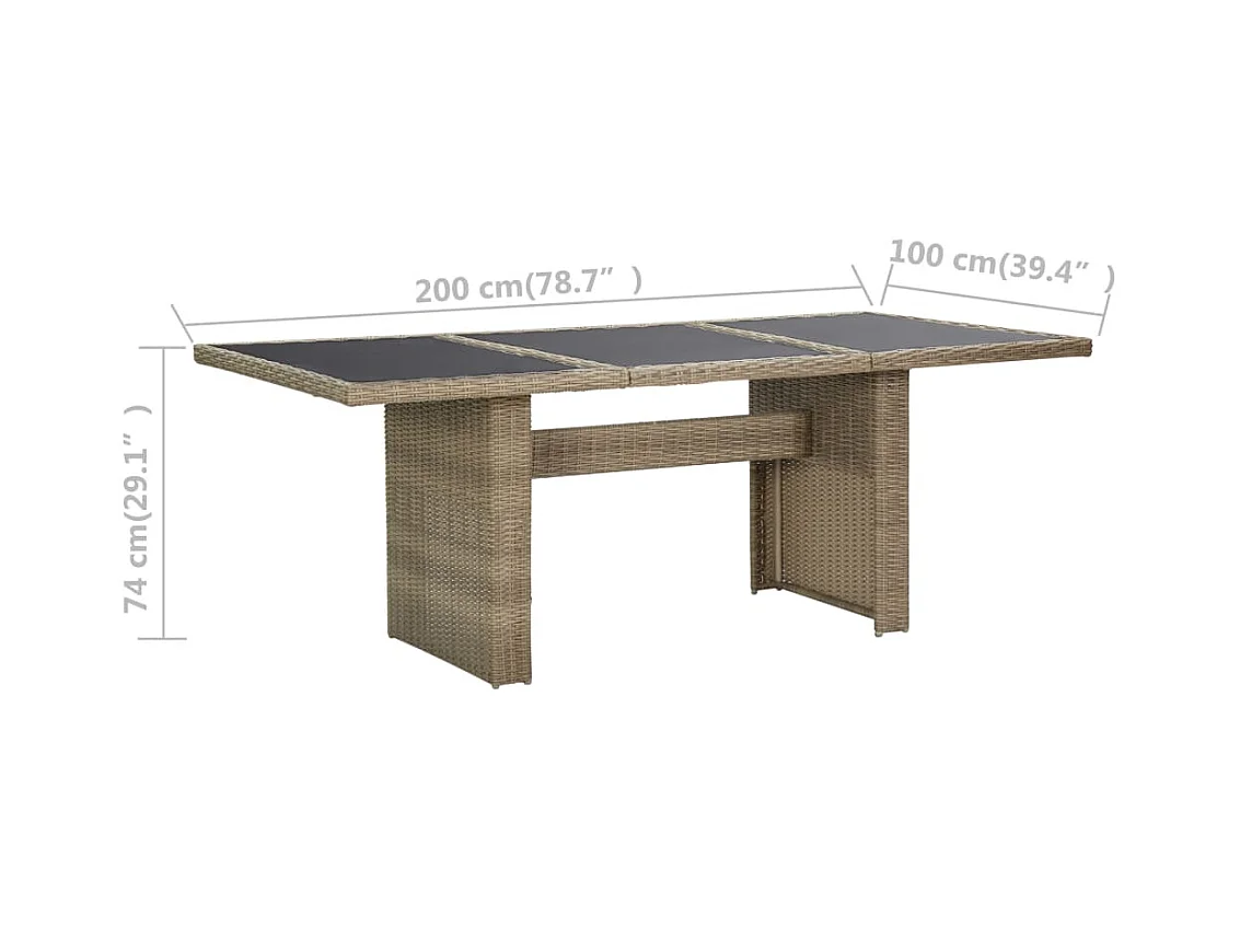 Mesa de jantar jardim 200x100x74 cm vidro e vime PE castanho