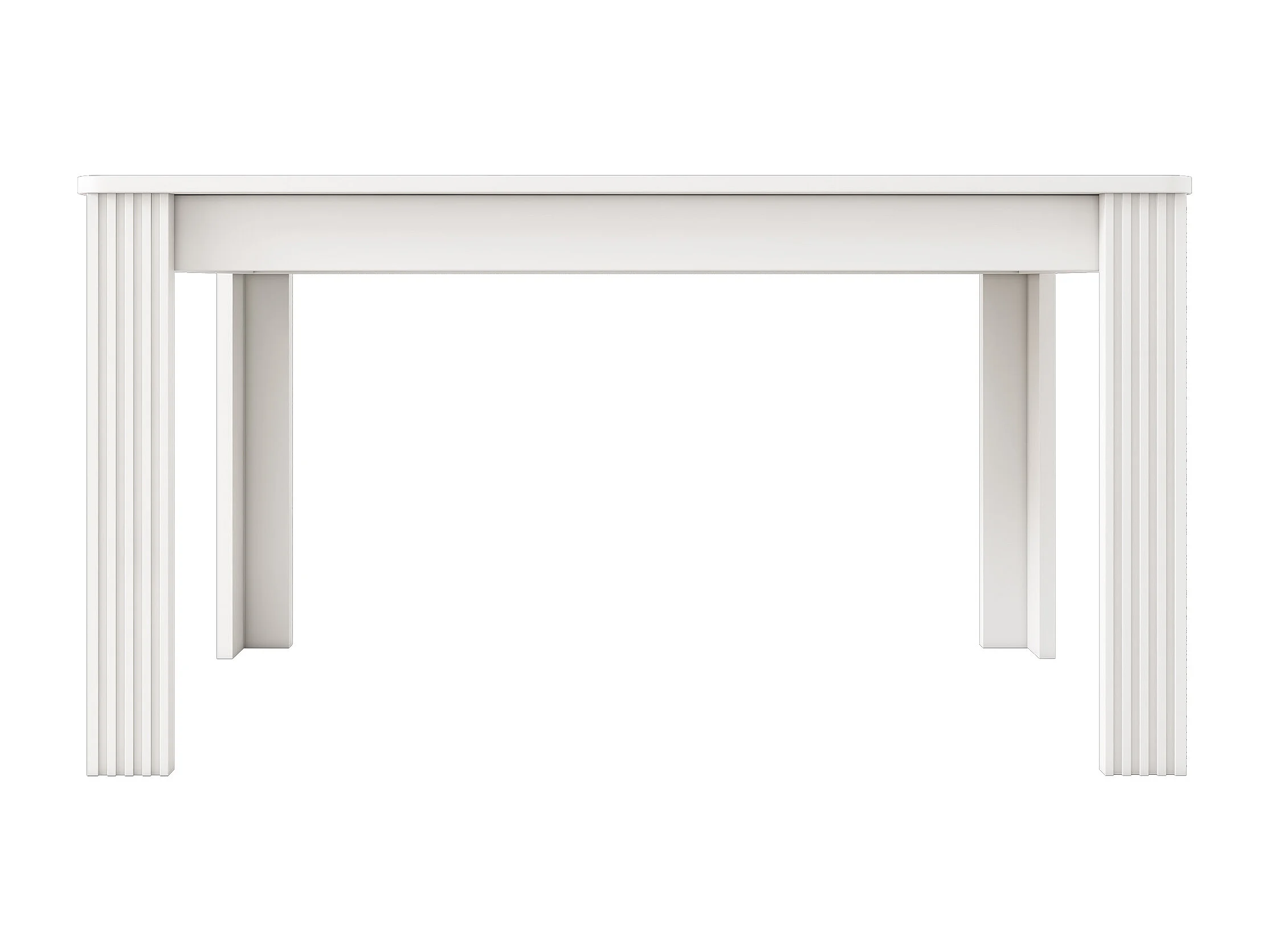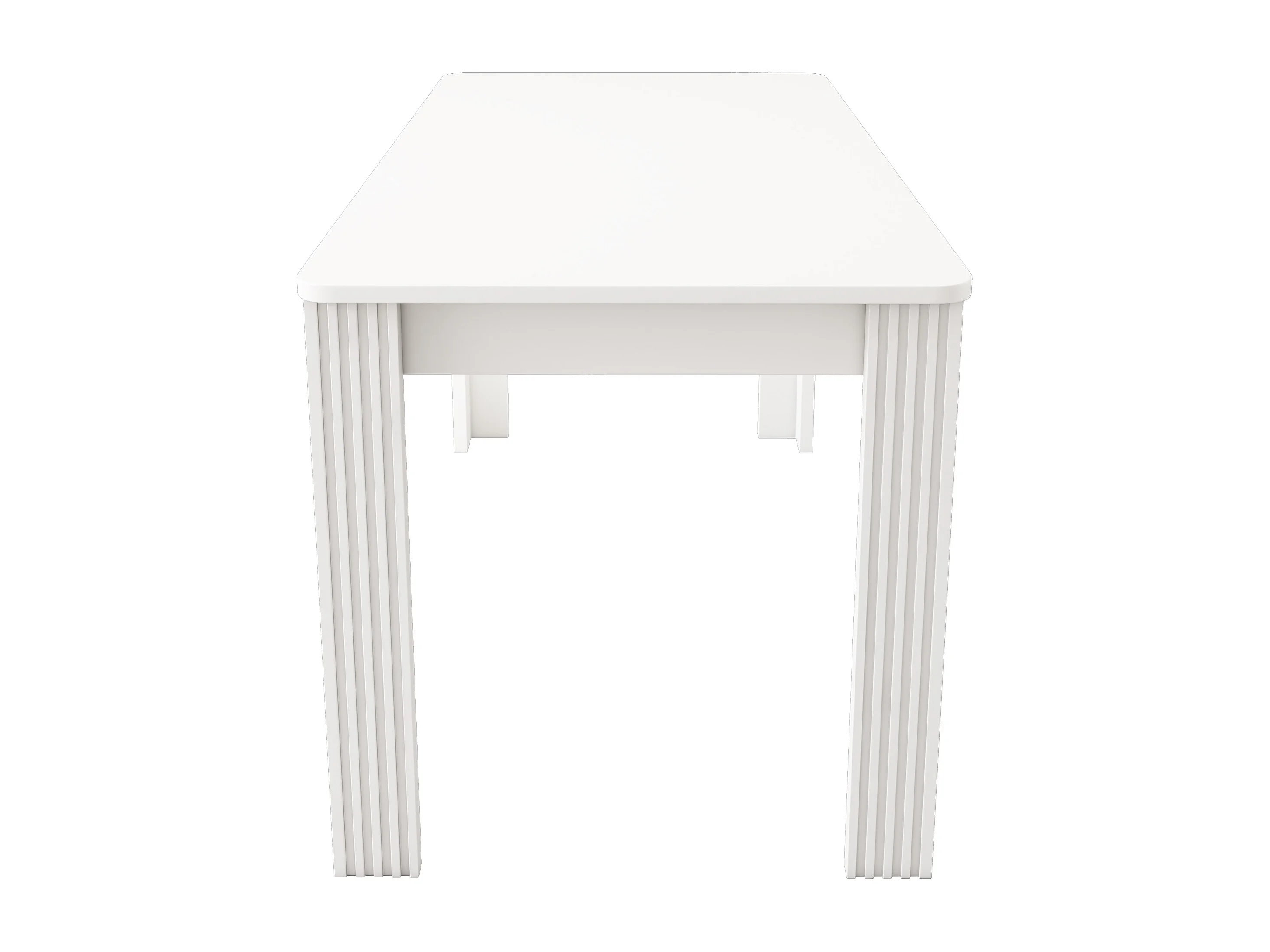 Mesa de jantar moderna retangular em MDF com quatro pernas, sala de jantar branca