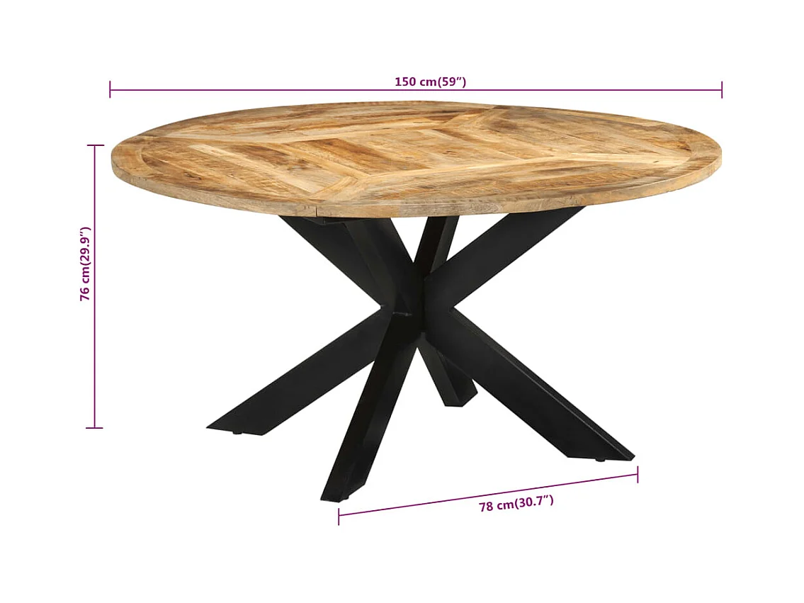 Mesa de jantar Ø150x76 cm madeira de mangueira maciça áspera