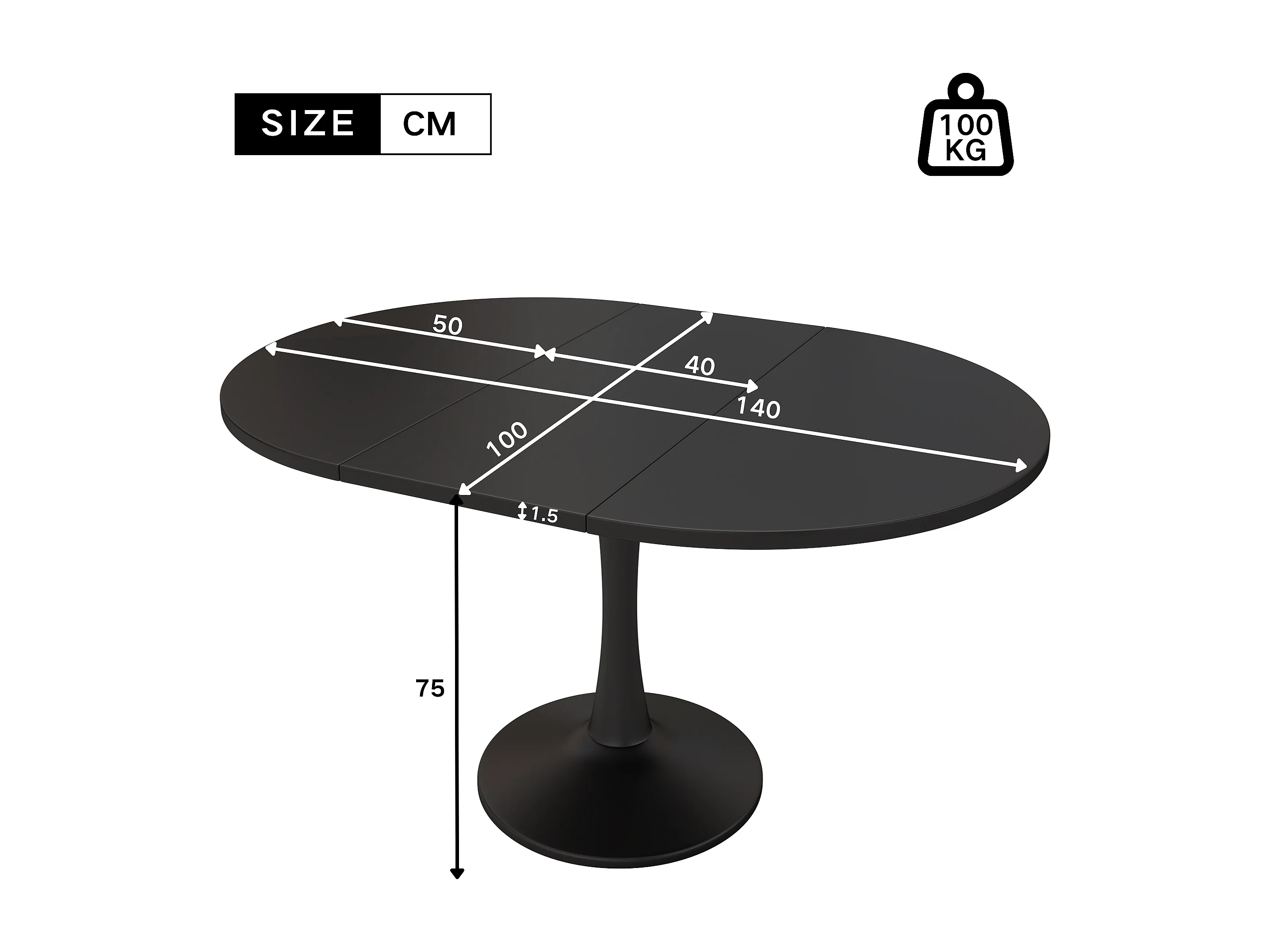 Mesa de Jantar Oval Extensível Moderna em MDF 100/140x100x75 cm Preta
