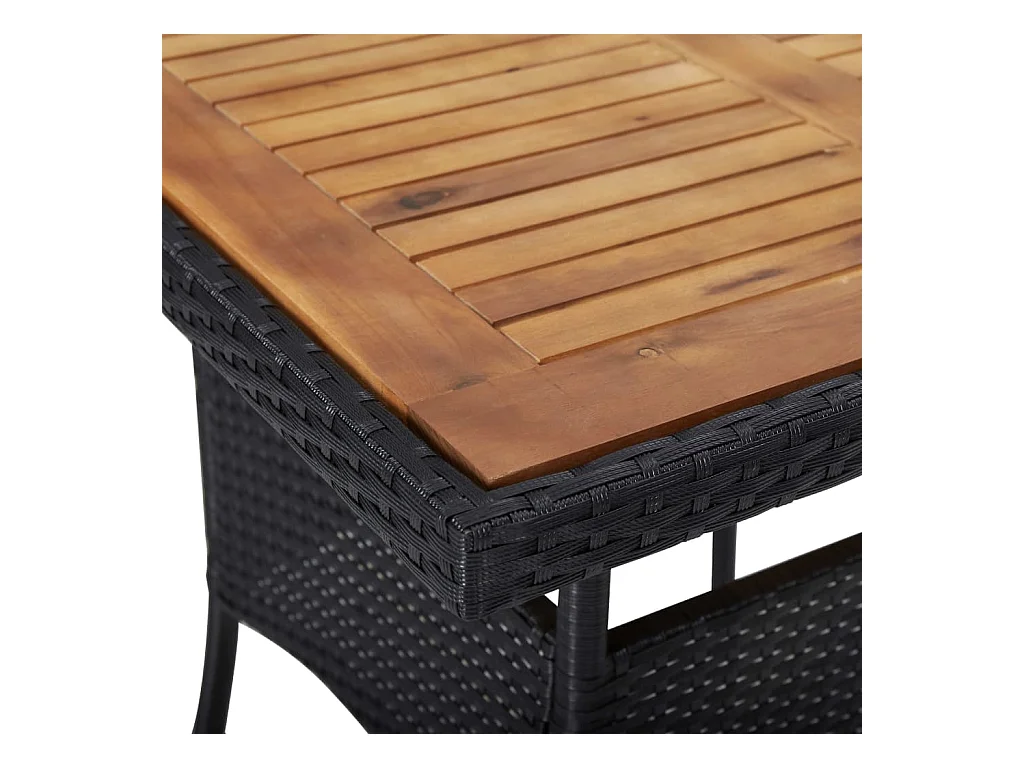 Mesa de jantar p/ exterior vime PE/madeira acácia maciça preto PT232406