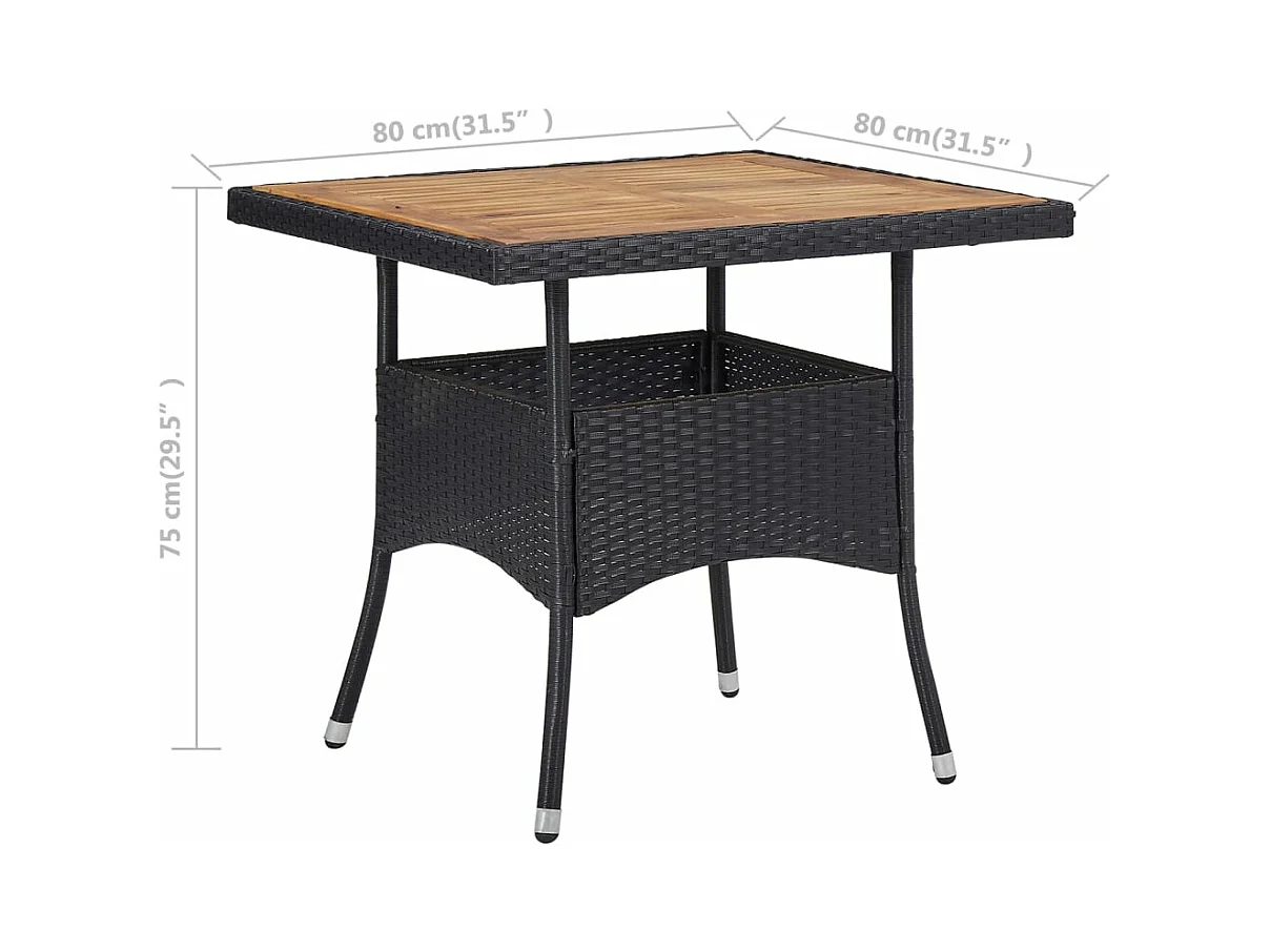 Mesa de jardim com tampo em acácia 80x80x75 cm vime PE preto