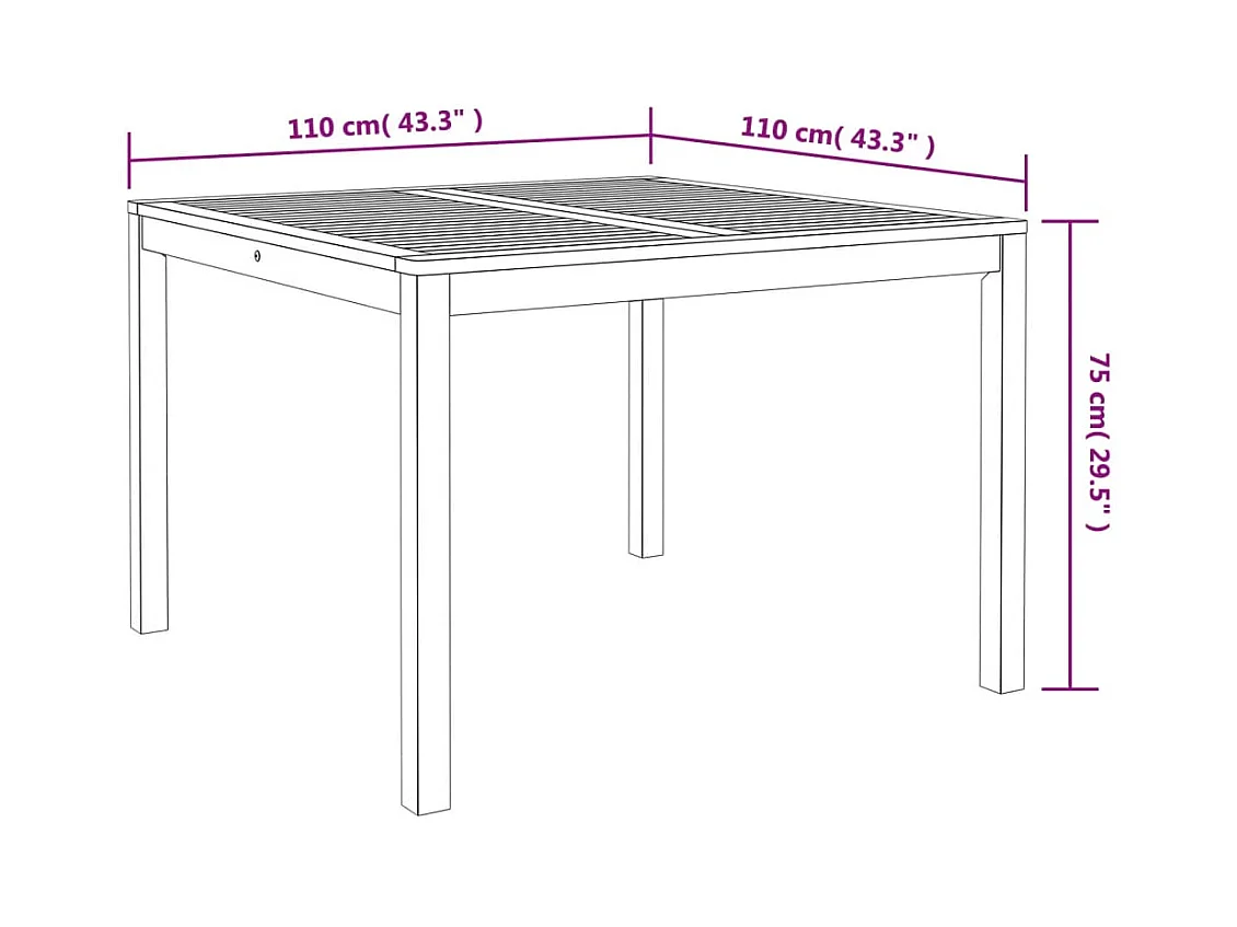 Mesa de jantar p/ jardim 110x110x75 cm madeira de acácia maciça