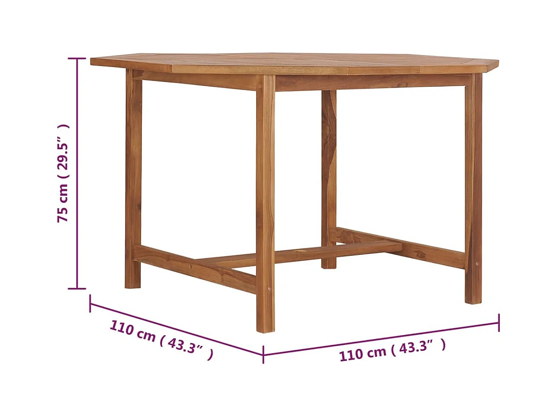 Mesa de jantar p/ jardim 110x110x75 cm madeira de teca maciça