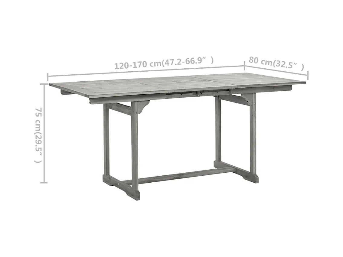 Mesa de jantar p/ jardim (120-170)x80x75 cm acácia maciça