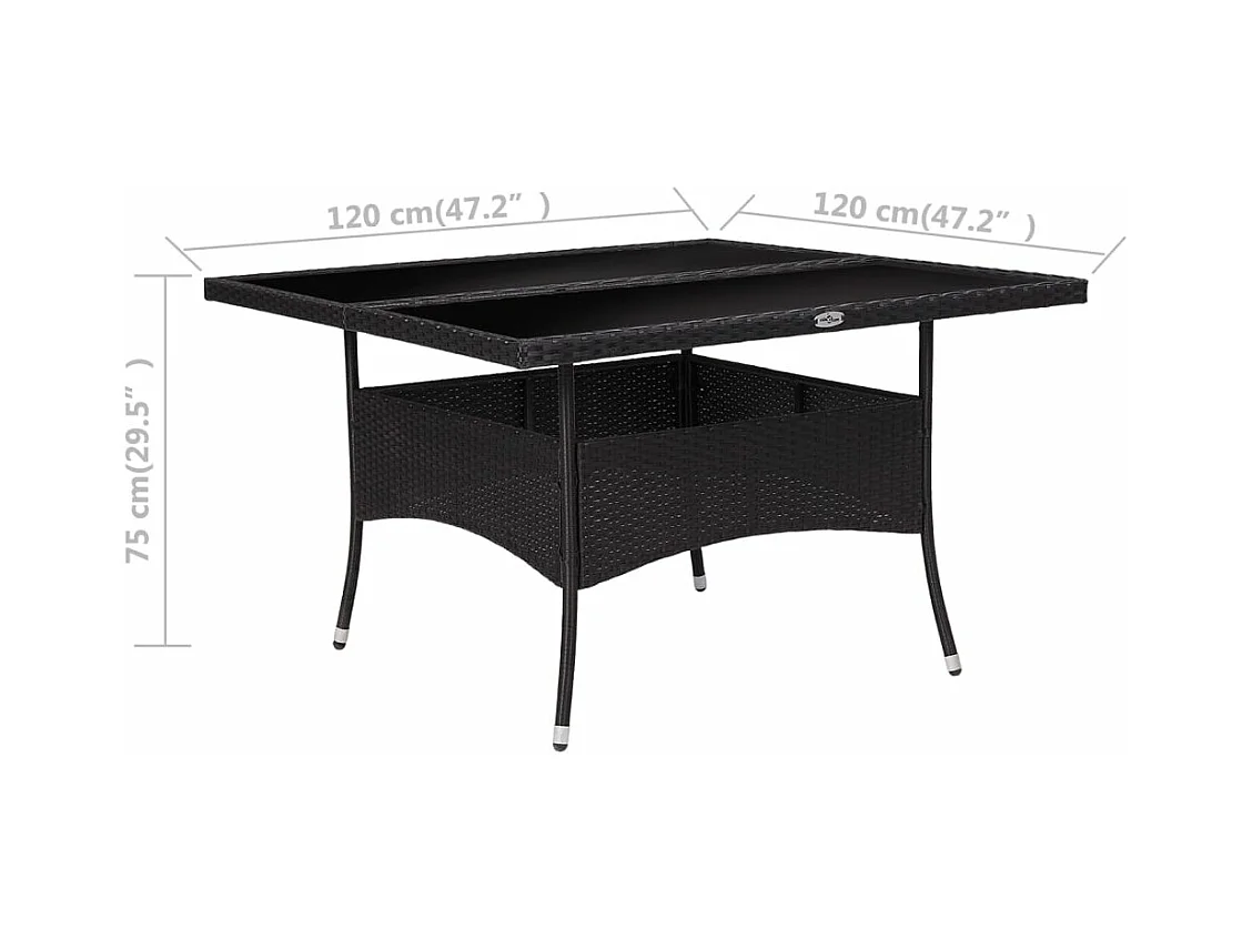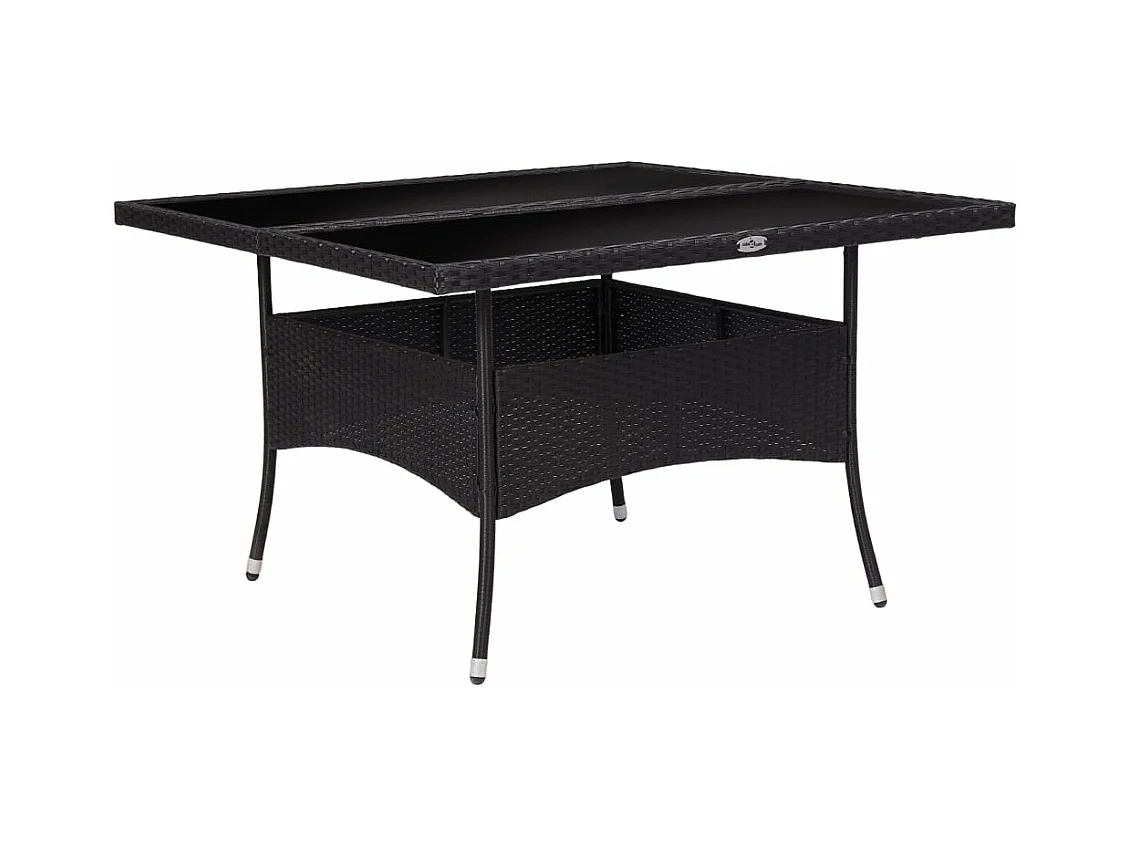 Mesa de jardim com tampo de vidro 150x90x75 cm vime PE preto