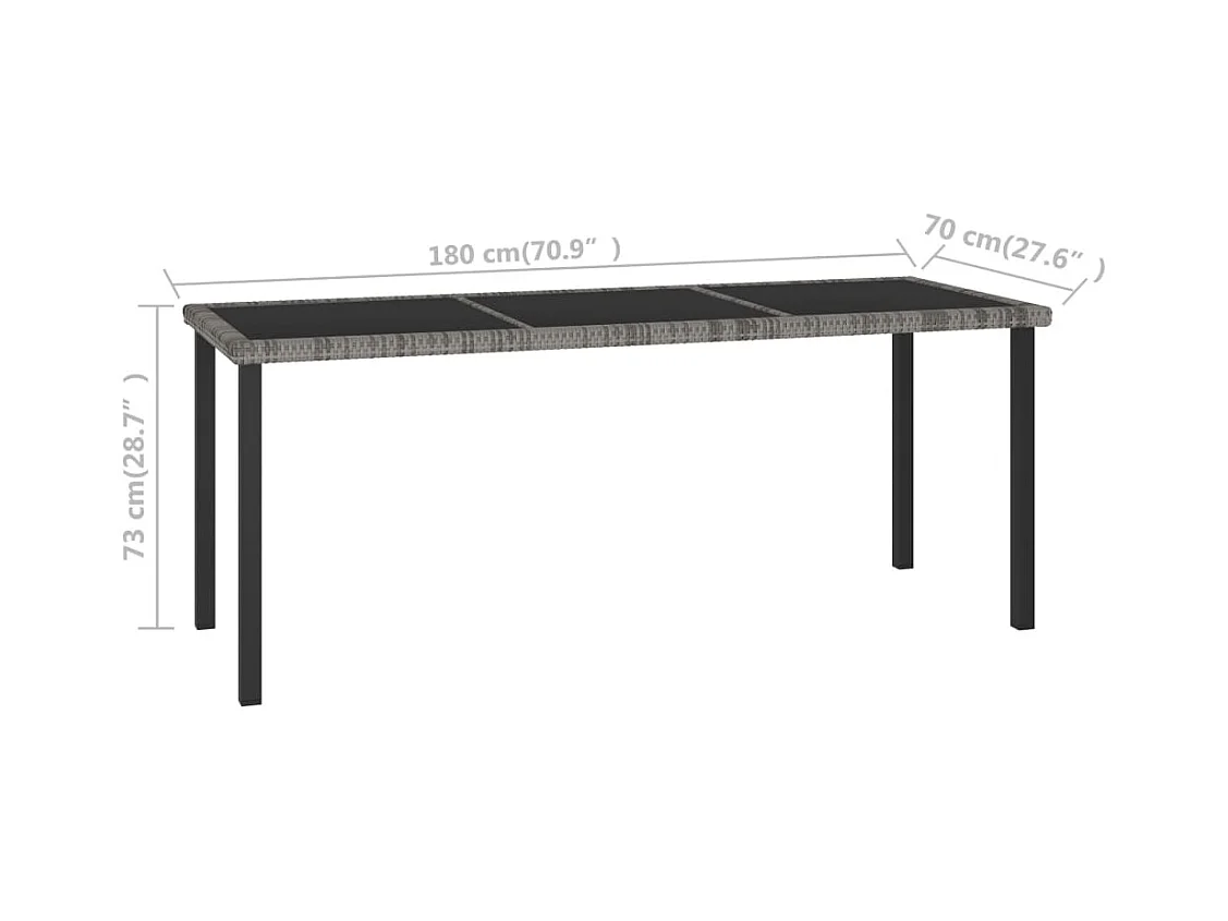 Mesa de jantar para jardim 180x70x73 cm vime PE cinzento