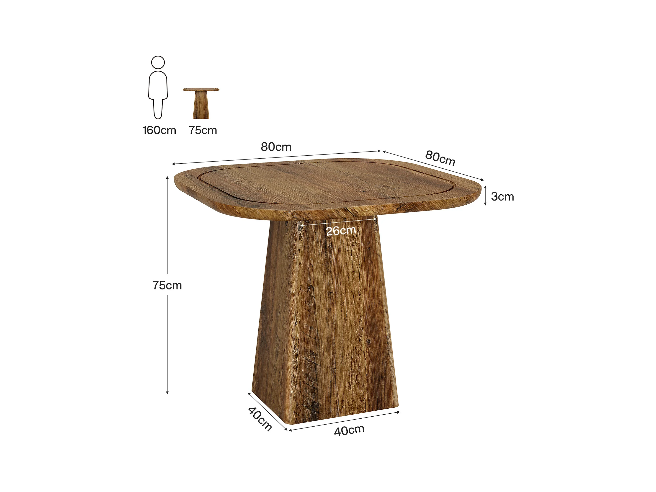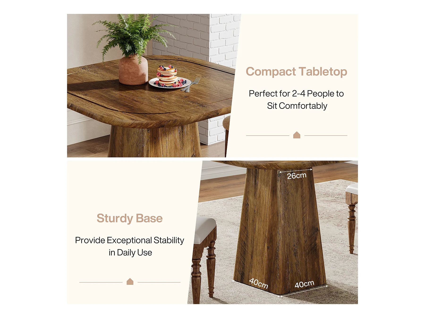 Mesa de jantar quadrada para 2-4 pessoas, mesa pequena de cozinha rural de 80 cm com base de pedestal resistente