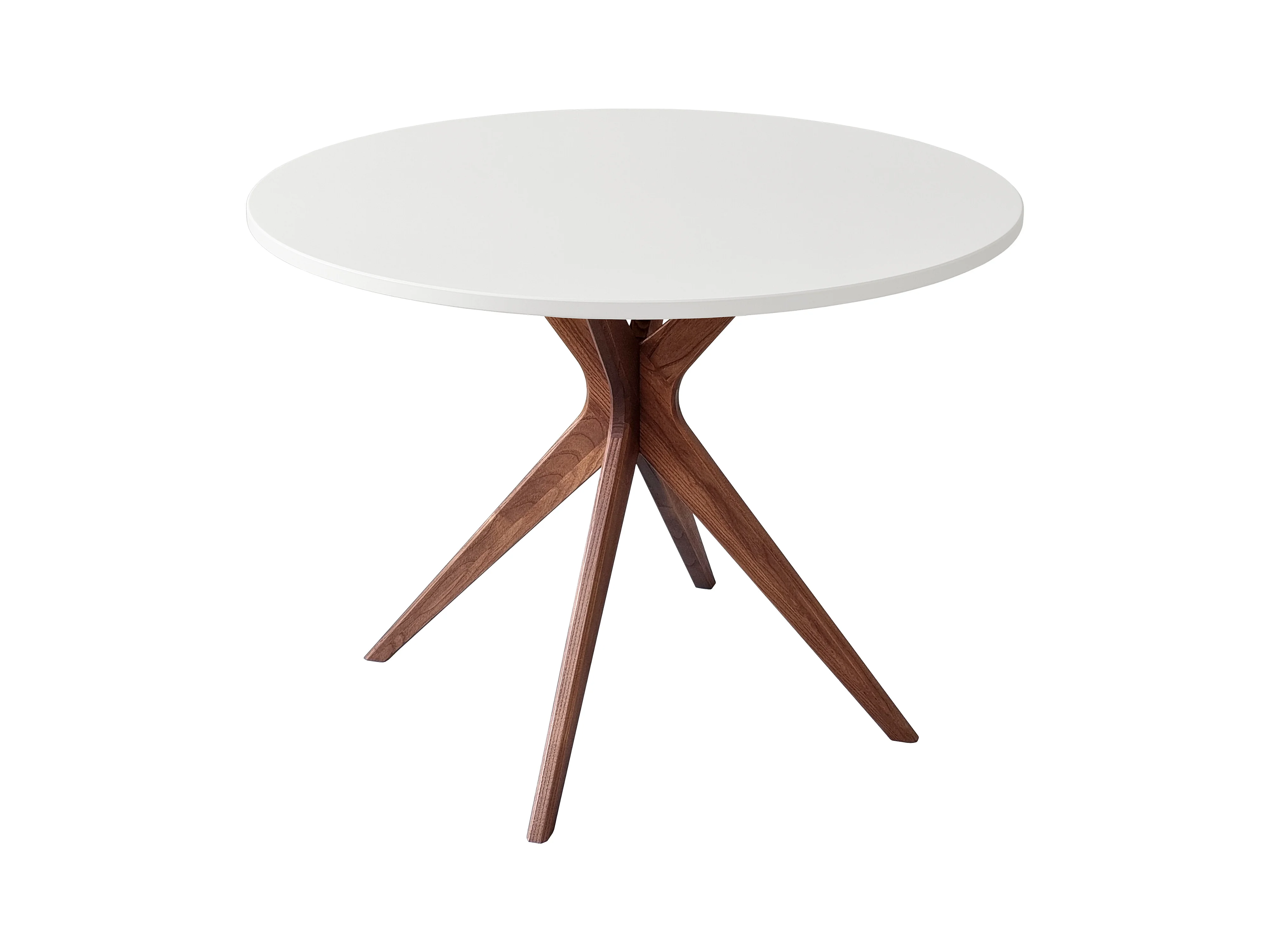 Mesa de jantar redonda 110 Jubi Bold Branca com pernas de carvalho
